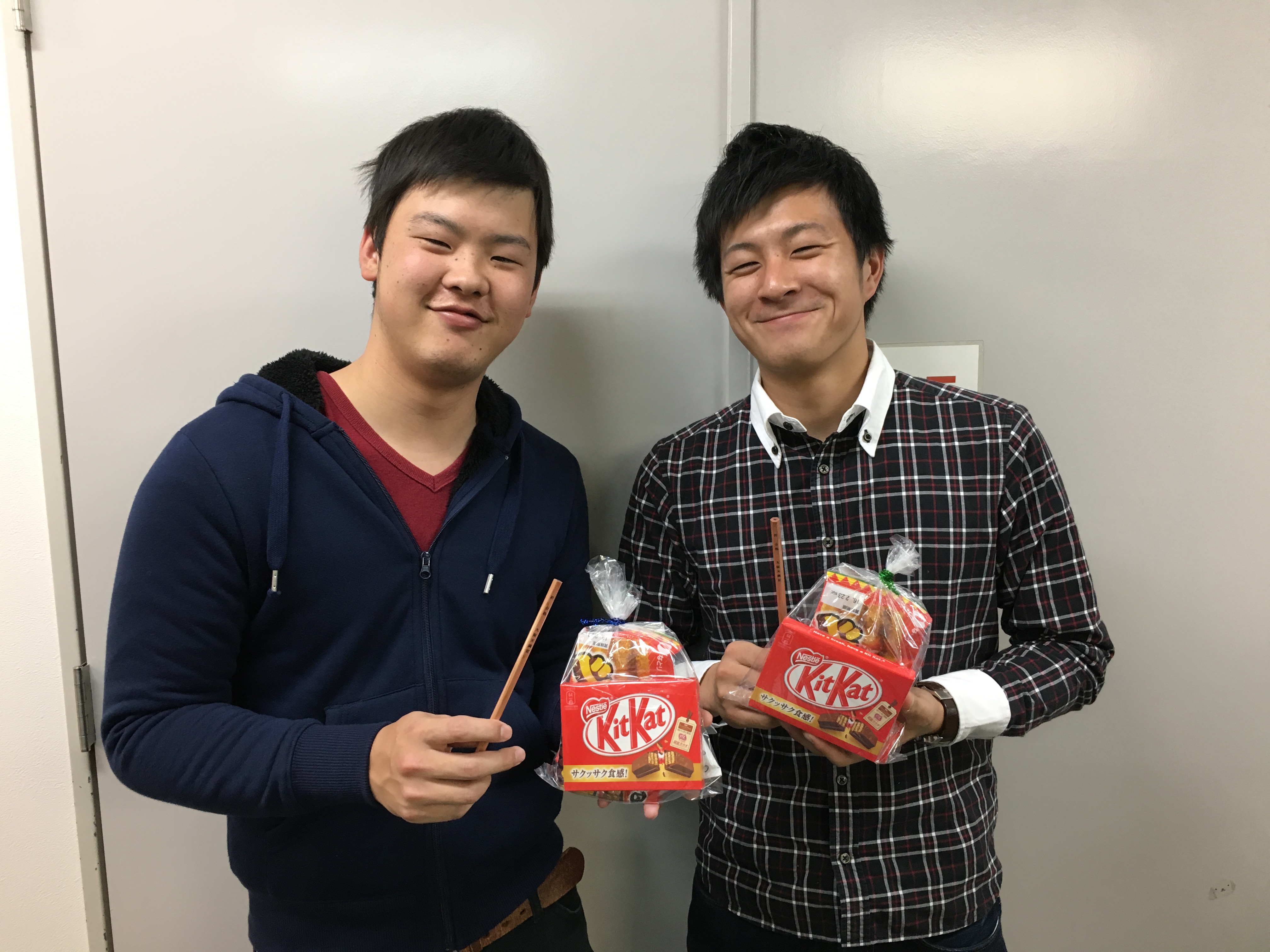 担任T先生から、縁起の良いお菓子セットと合格鉛筆のサプライズ!
