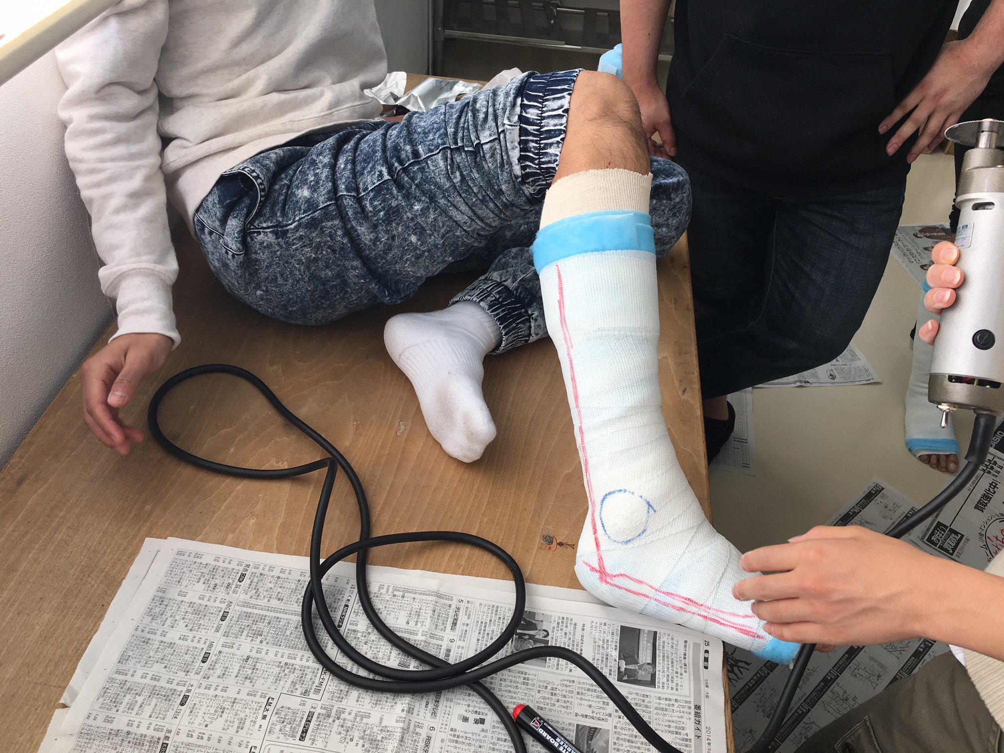 もちろん、ギプスの下の皮膚はクッション材によって保護されているので、のこぎりの歯が多少当たったぐらいでは怪我はしないのですが…