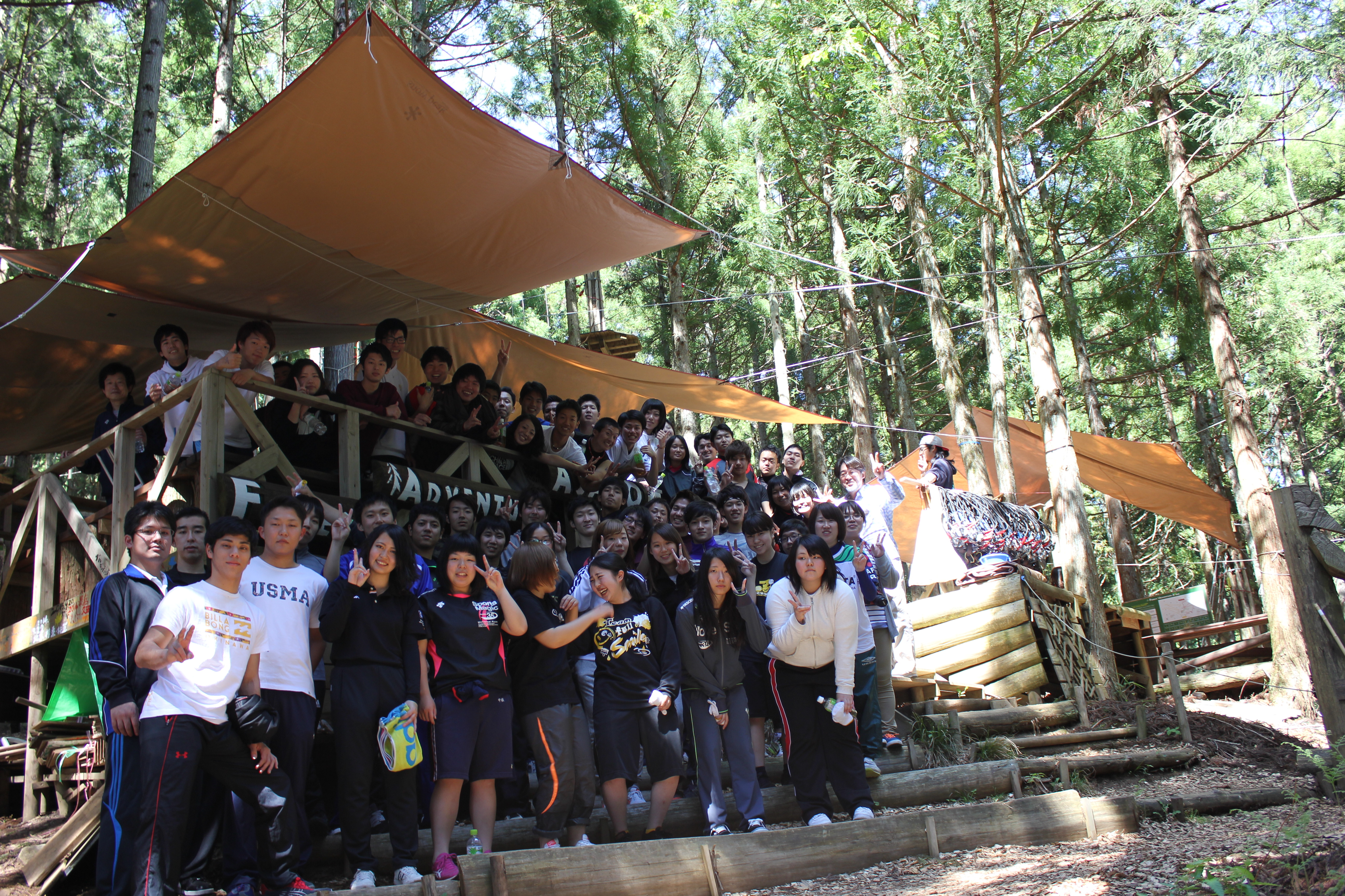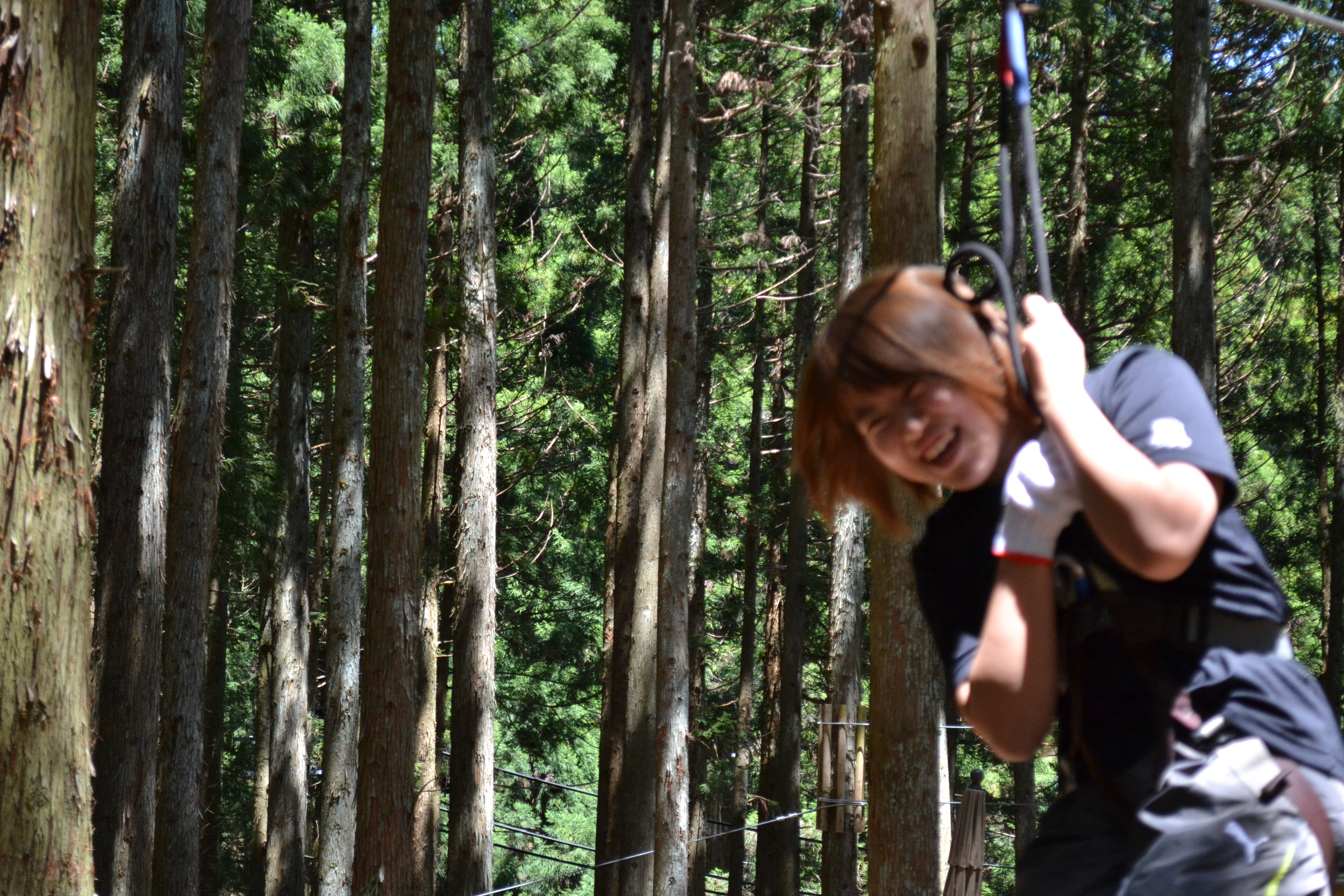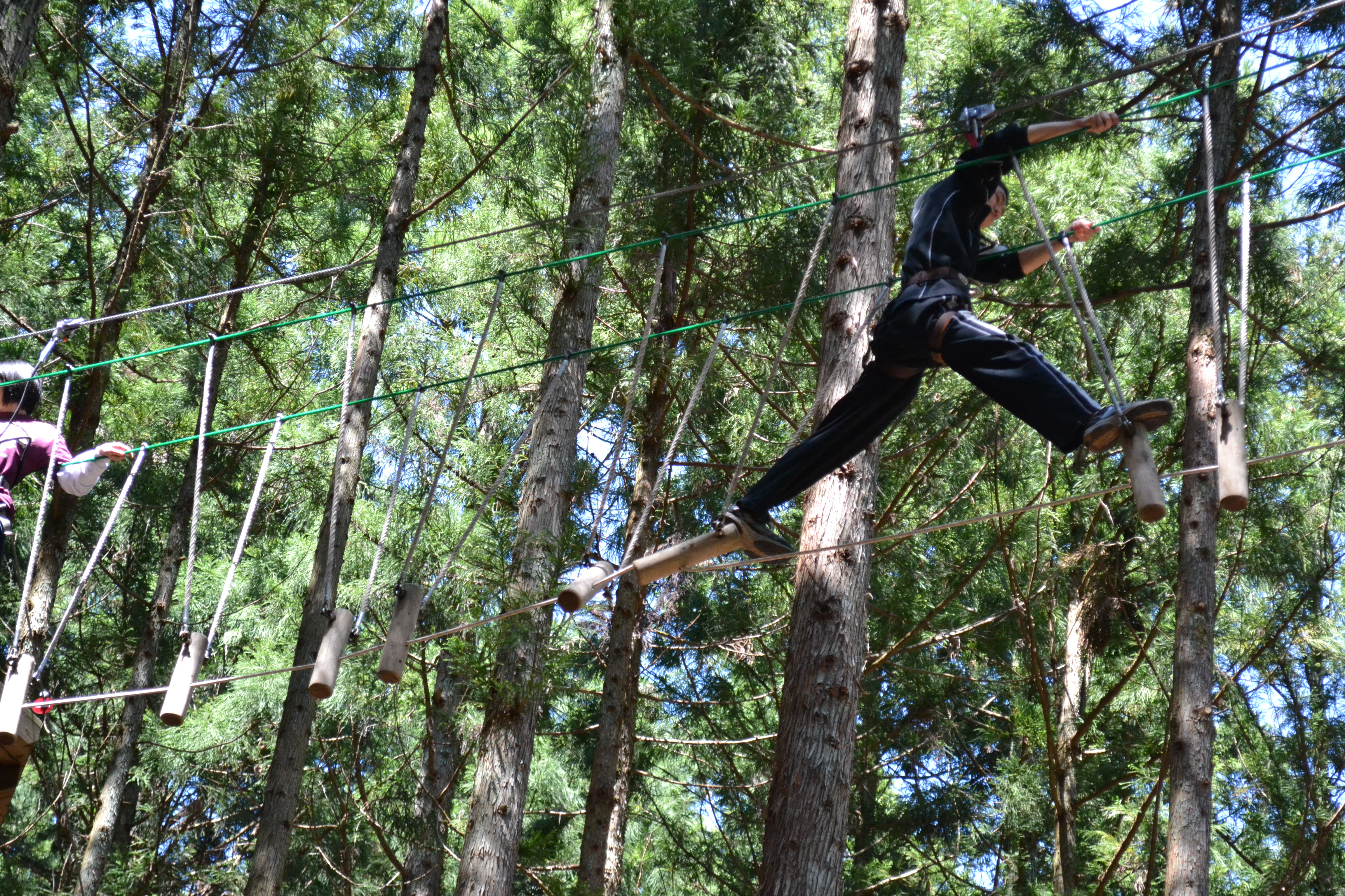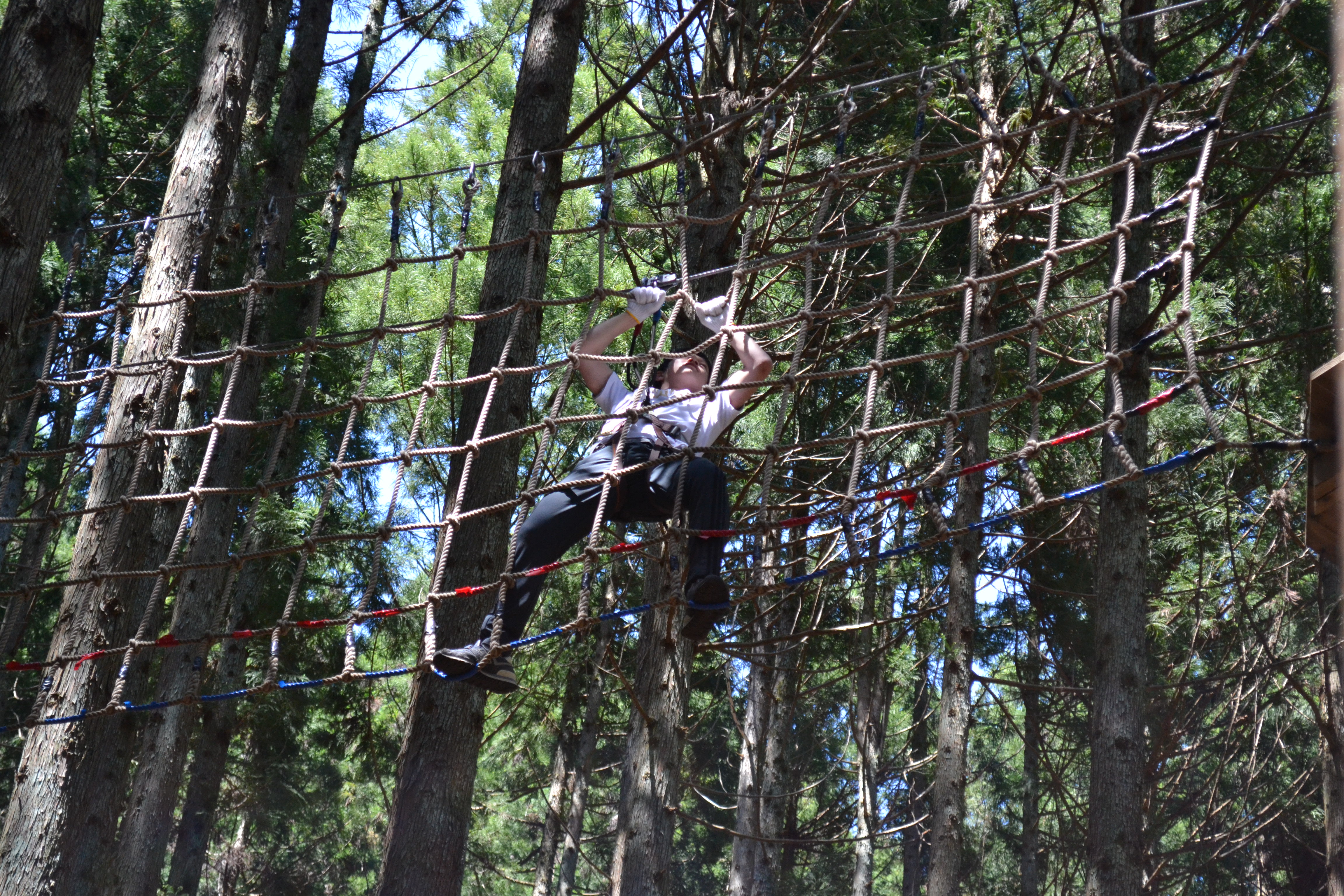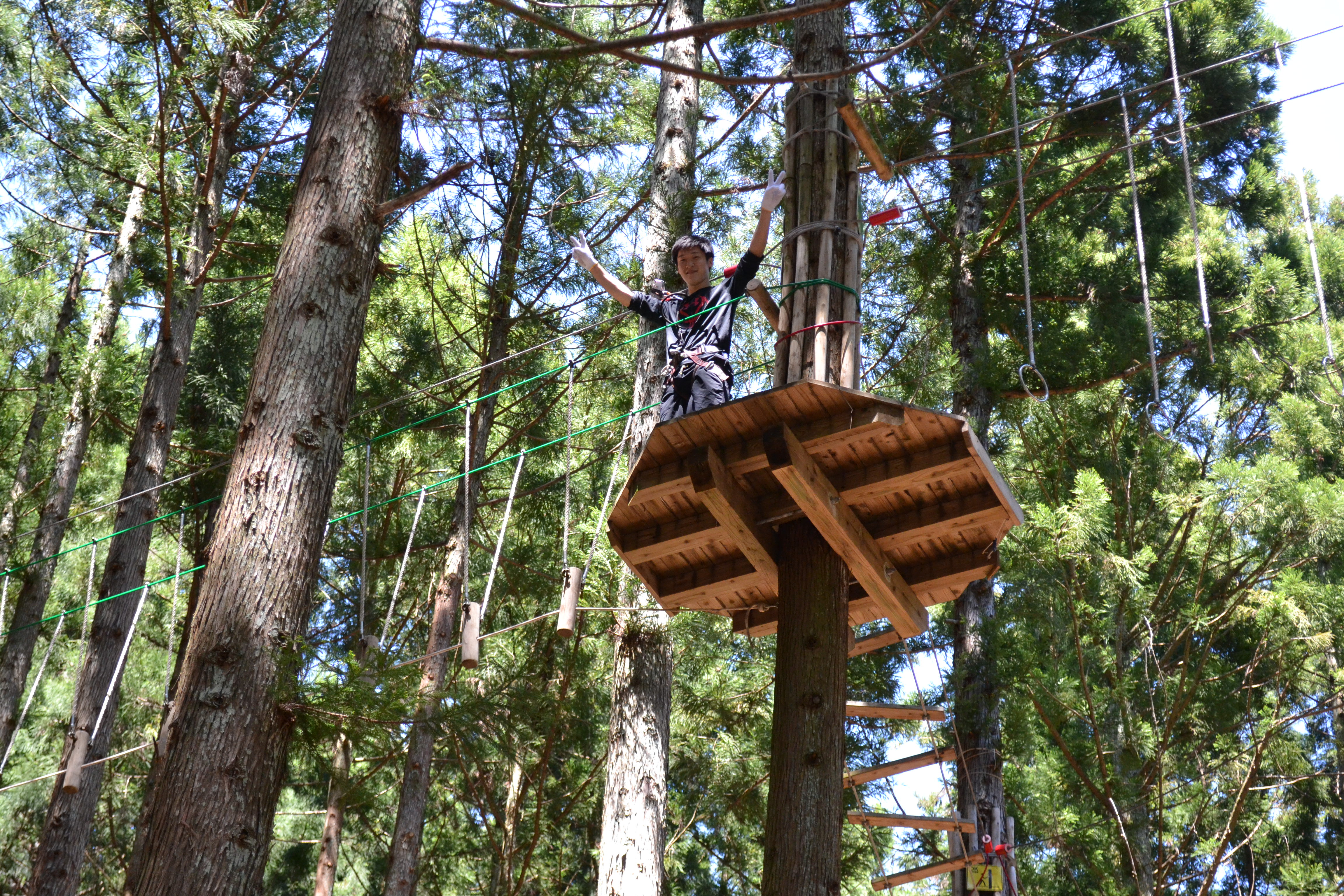 初日の朝は、朝来市にあるフォレストアドベンチャーでアスレチック体験です。