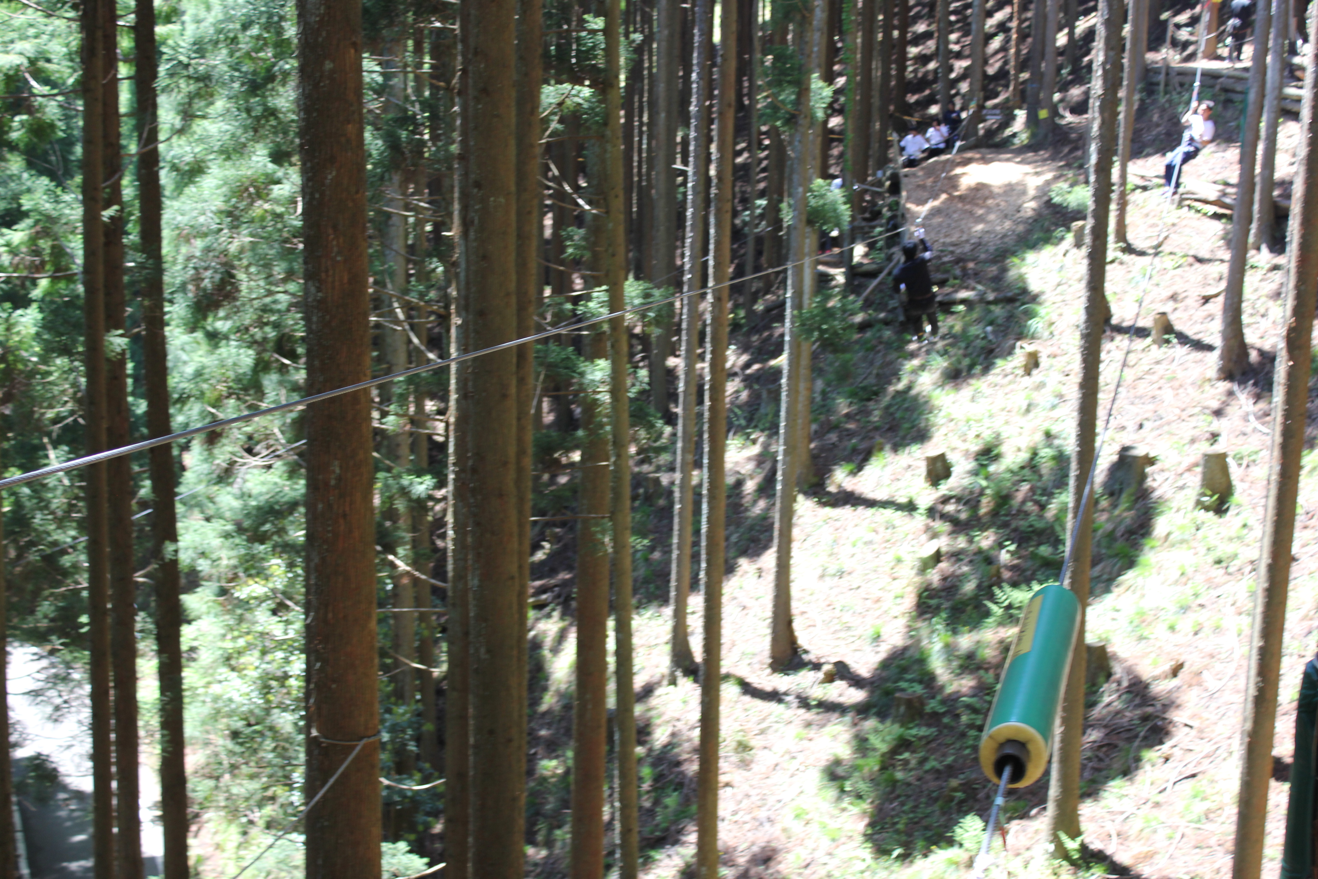 不安定な丸太やネットをたどり、最後は谷越え![]()