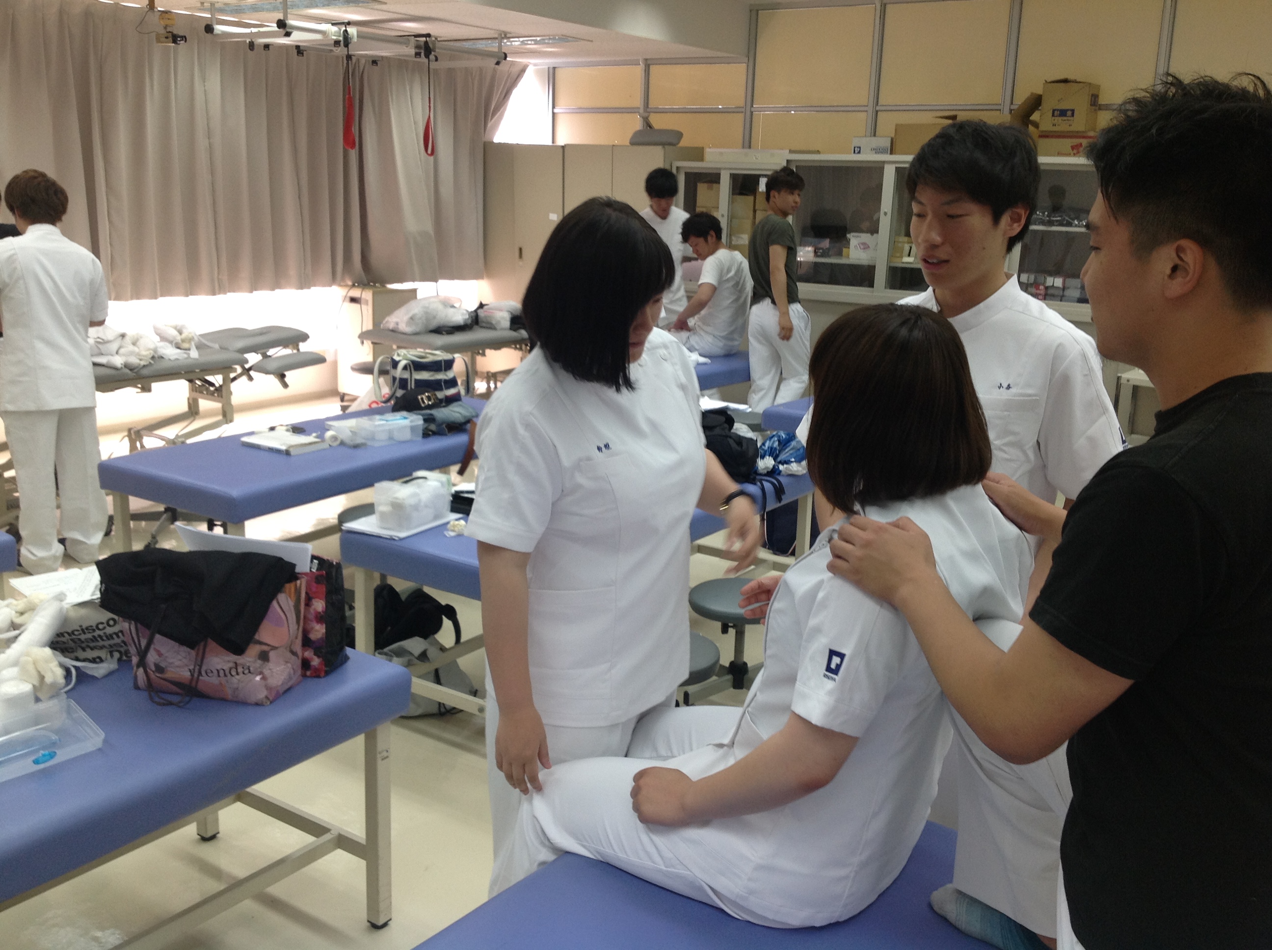 2年生の今日は、鎖骨骨折の固定法と、肩鎖関節の診察及び整復法を学びました。