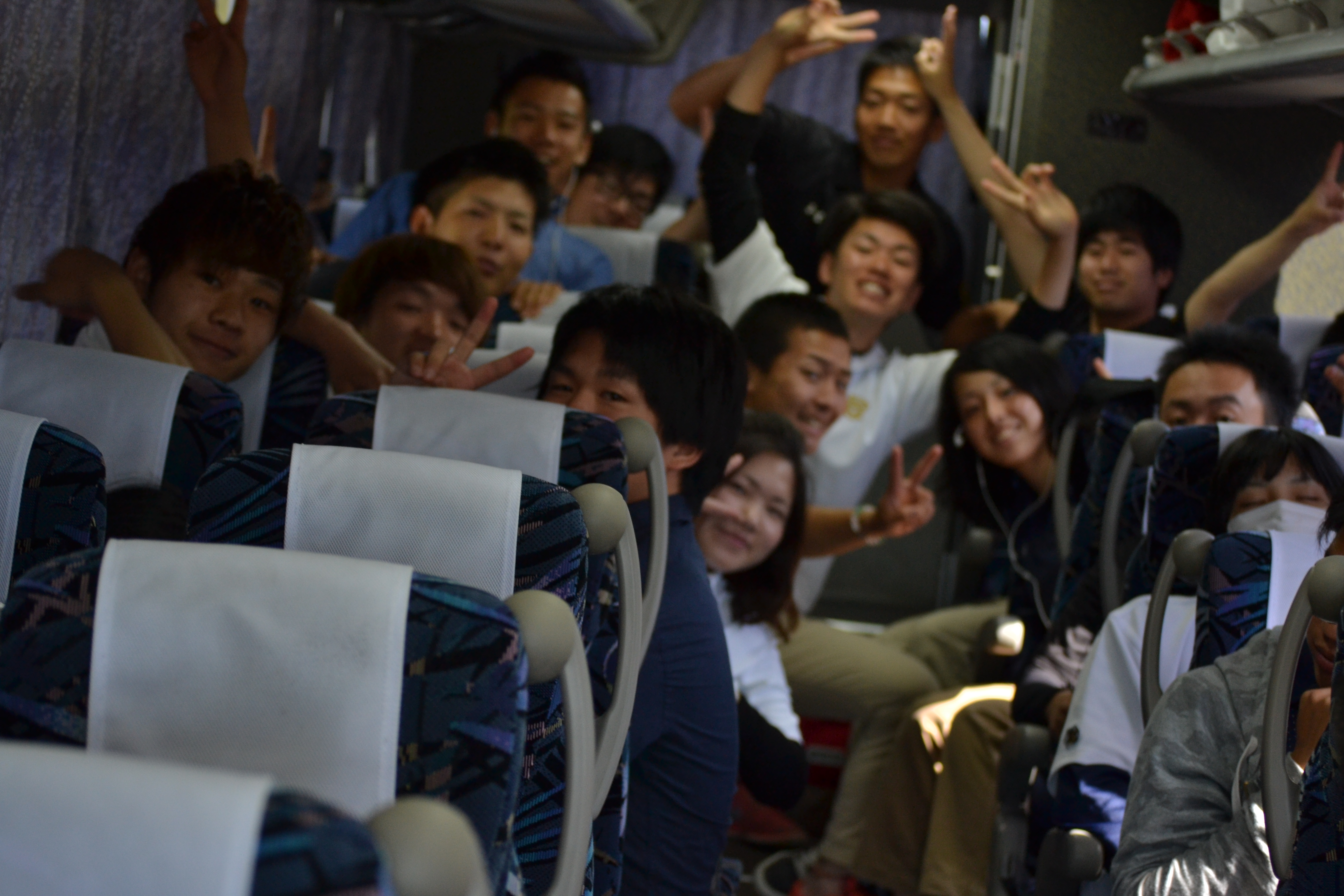 バスの中では、きっとお休みモードかと思いきや![]()
