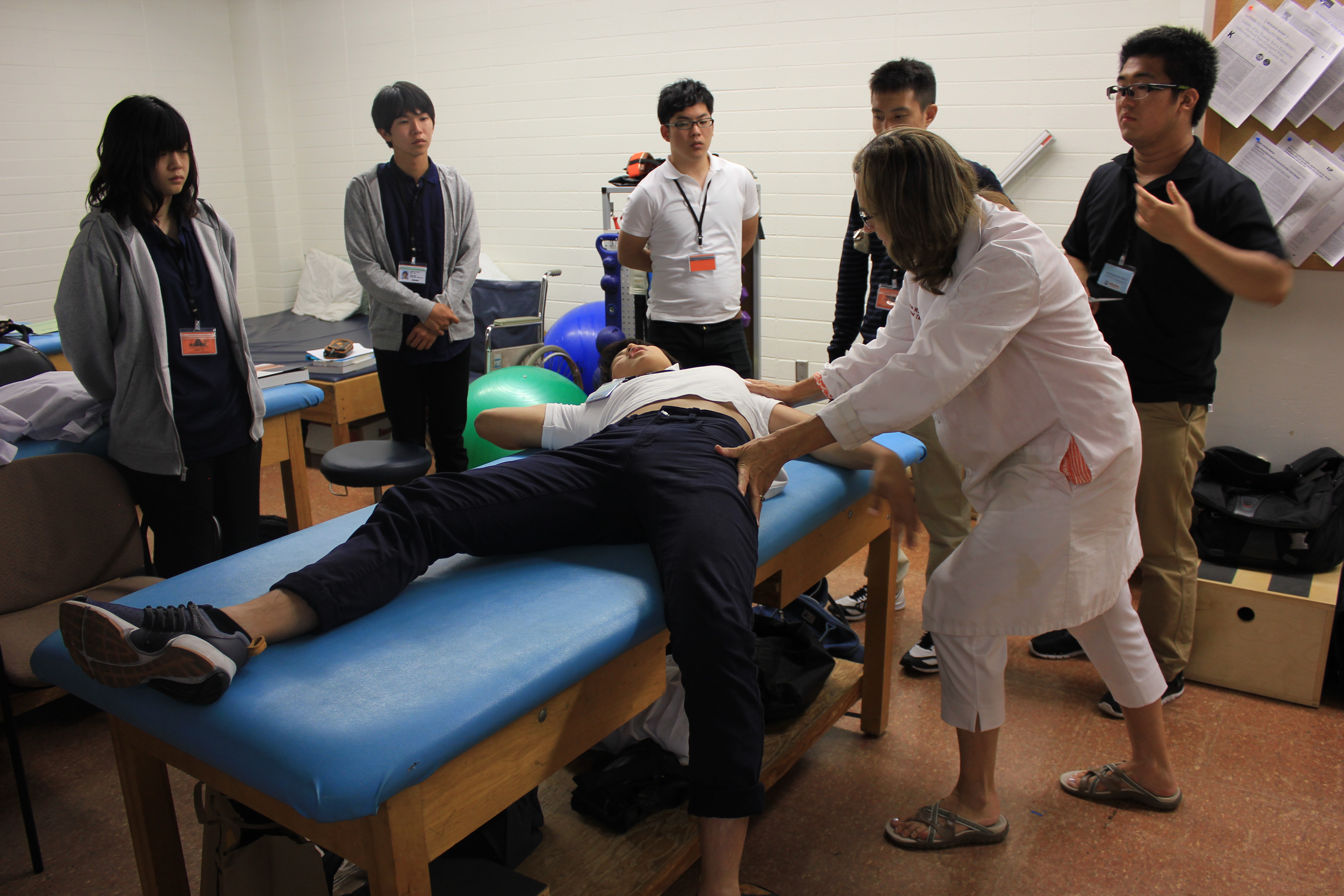 午後はジム先生による献体の授業で、筋肉や神経、血管などの勉強するグループと、小松先生とスージー先生による体幹の筋肉を勉強するグループにわかれて勉強しました。