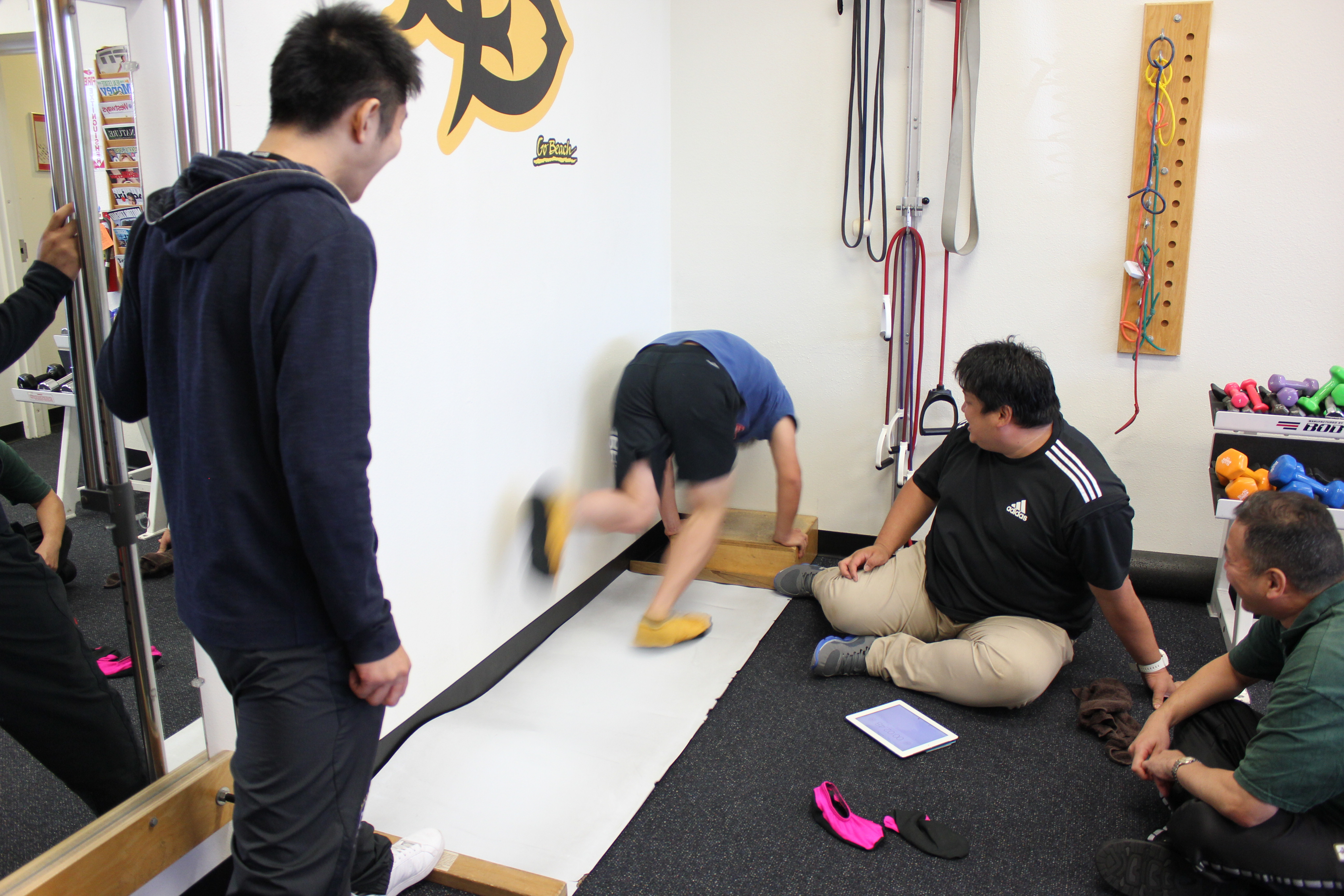 午前中はジム先生のクリニックで実際のアスリートの方を呼んでいただき、症例をみさせていただきました。