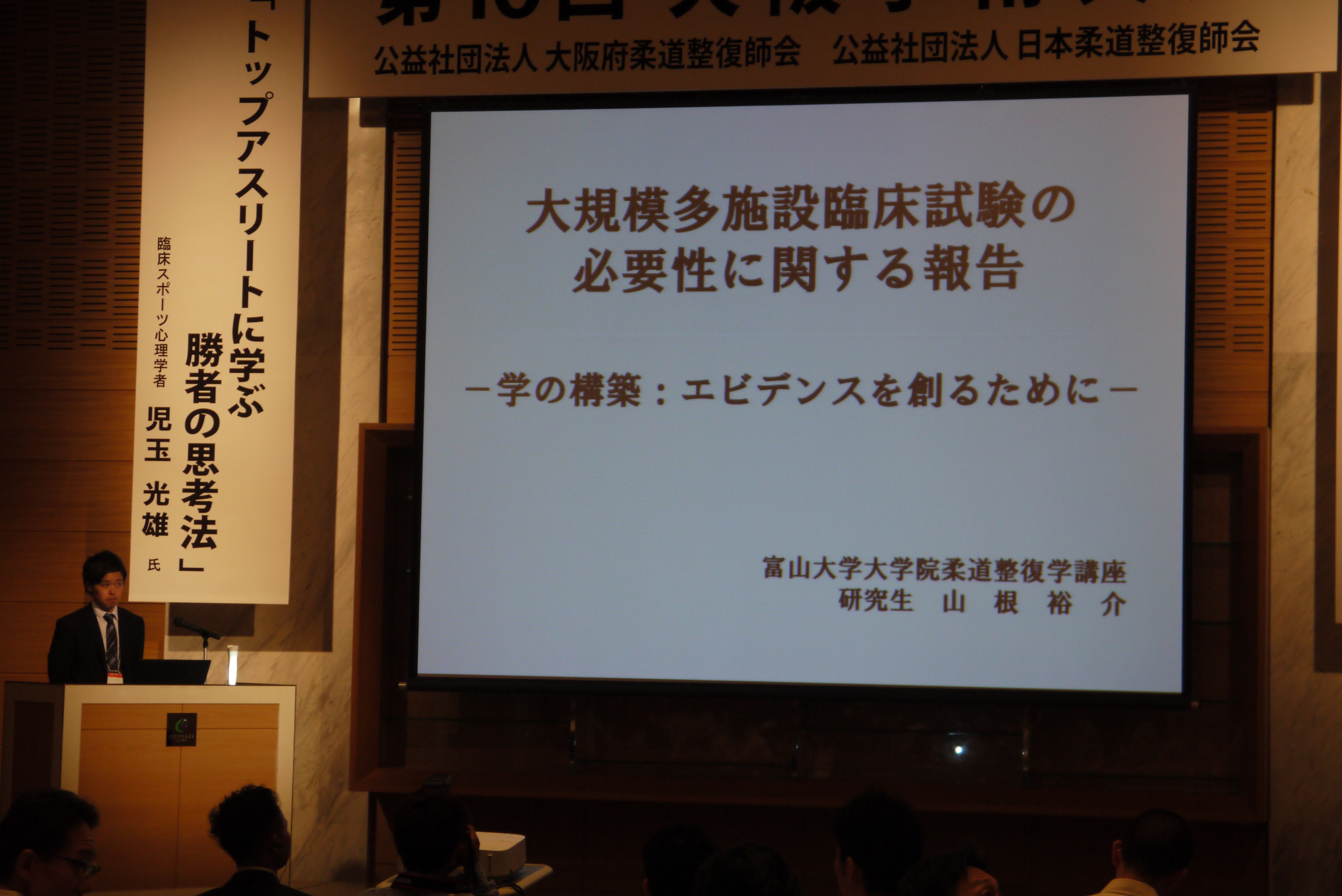 2016.09.05 夏の出来事 その2 8月21日(日) 公益社団法人 大阪府柔道整復師会 学術大会に参加してきました。 この学術大会には学生も参加し、柔道整復師の諸先生方の発表を聴講しました。 この学術大会では、本校卒業生の山根裕介先生も発表していました。 今度は、9月17日(土)に校内学術大会です。 この学術大会は、学生達で運営、発表を行います。 今回の大阪学会もきっと参考にしてくれていると思います。 楽しみです☆ 前の記事 記事一覧 次の記事