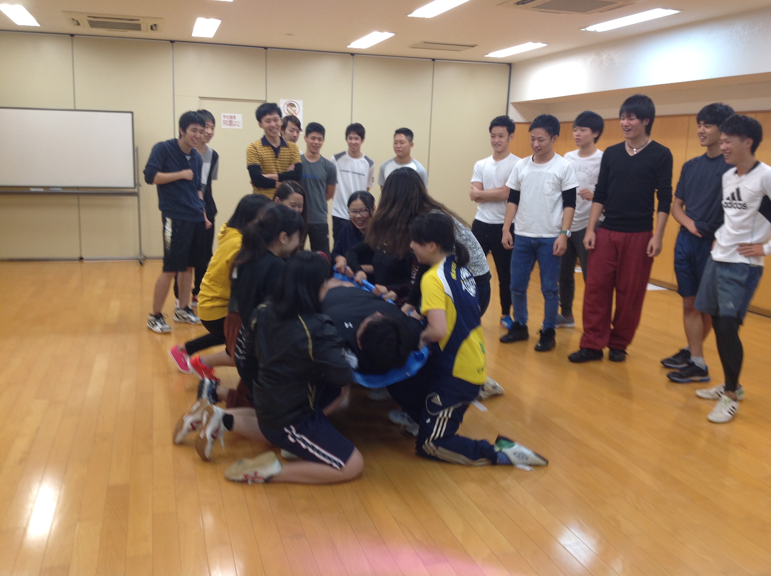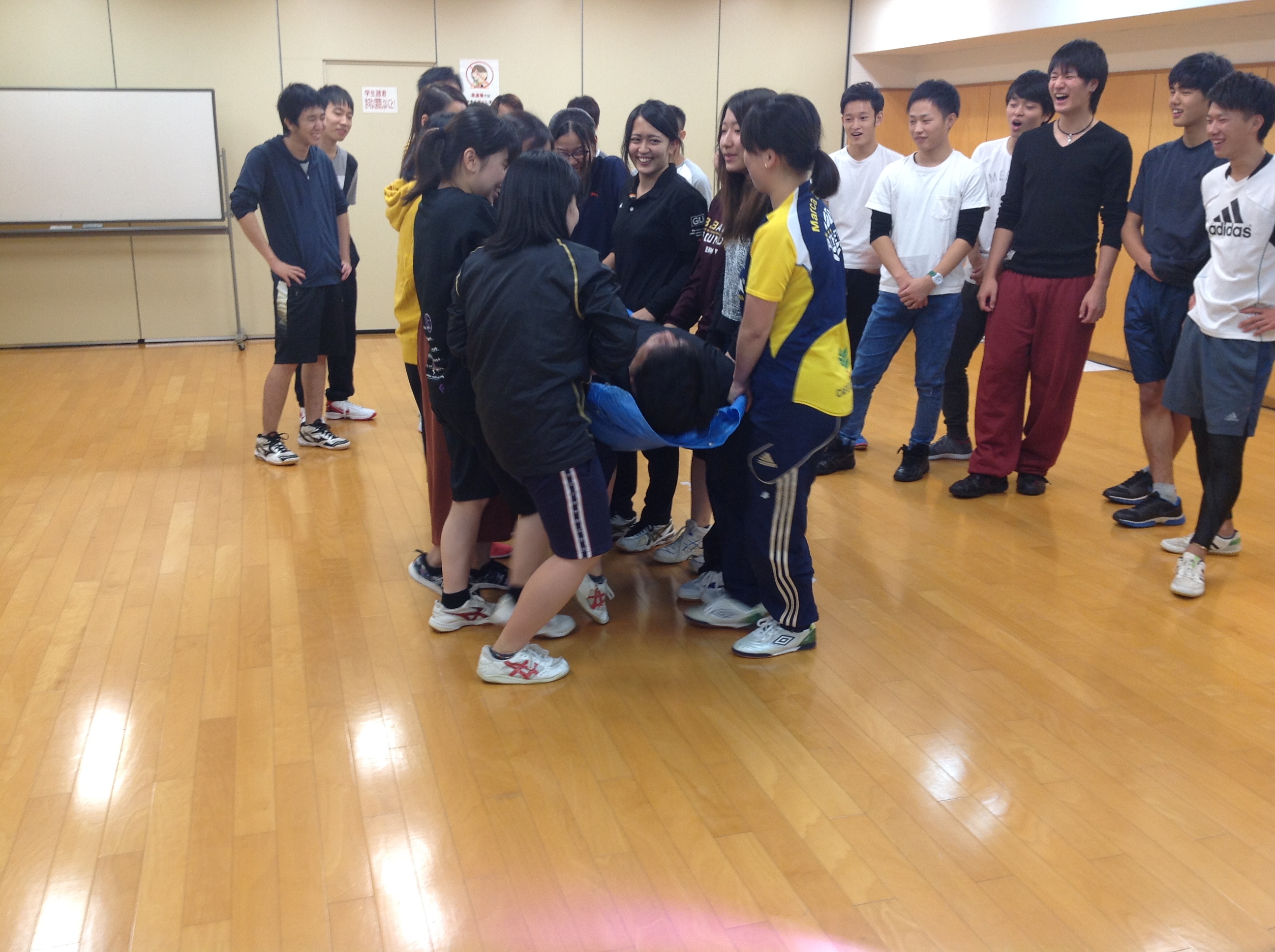 1年生の授業で、救急法における「搬送」をテーマに行いました。