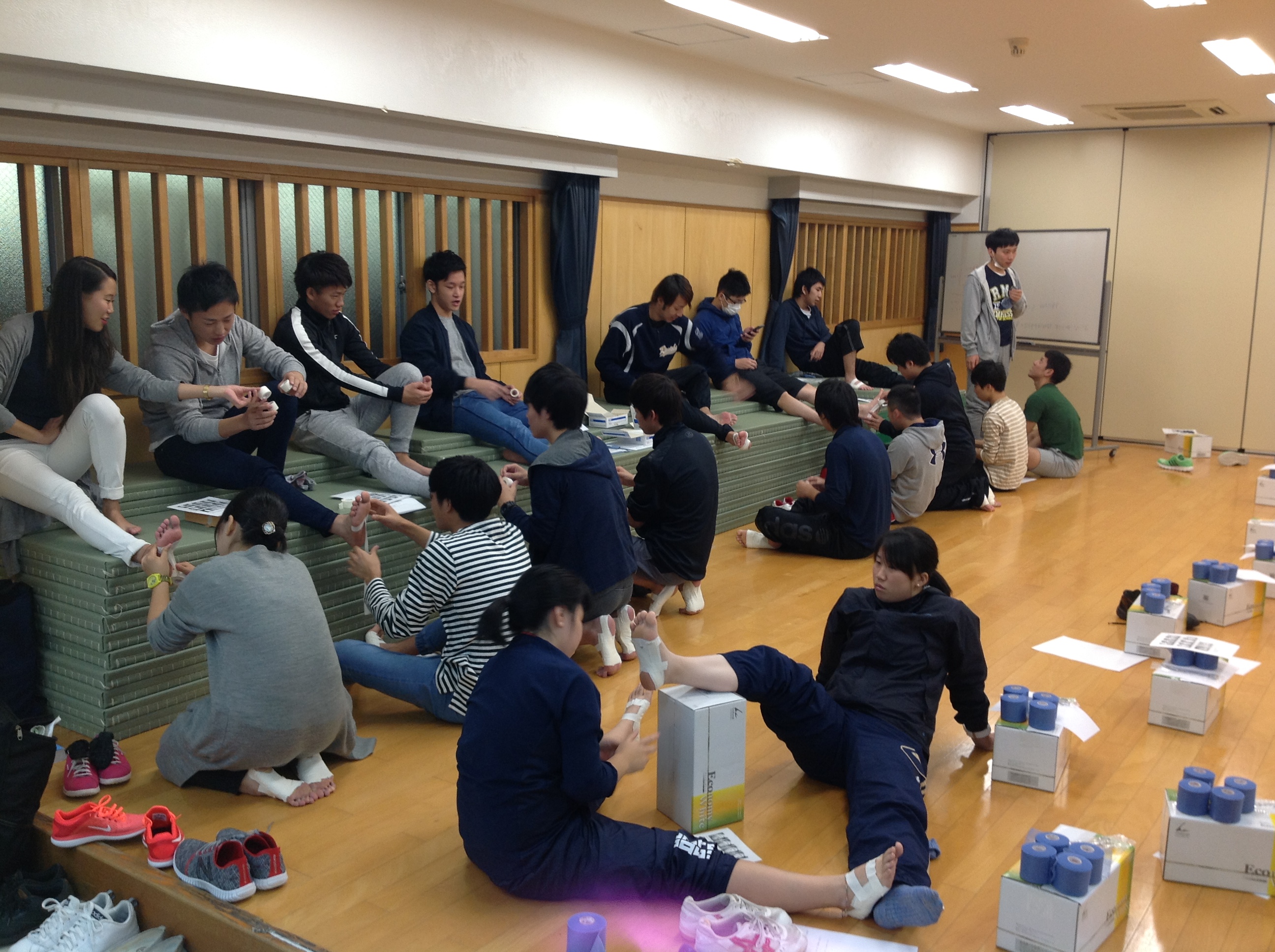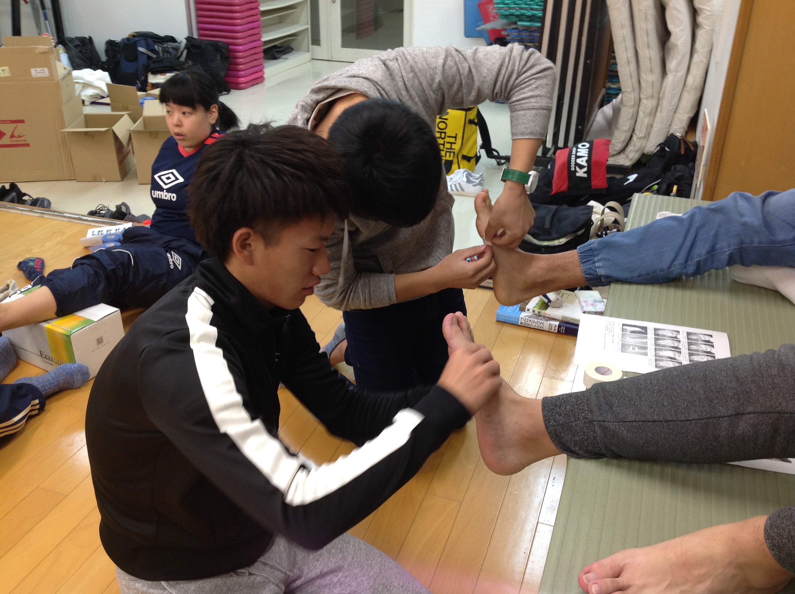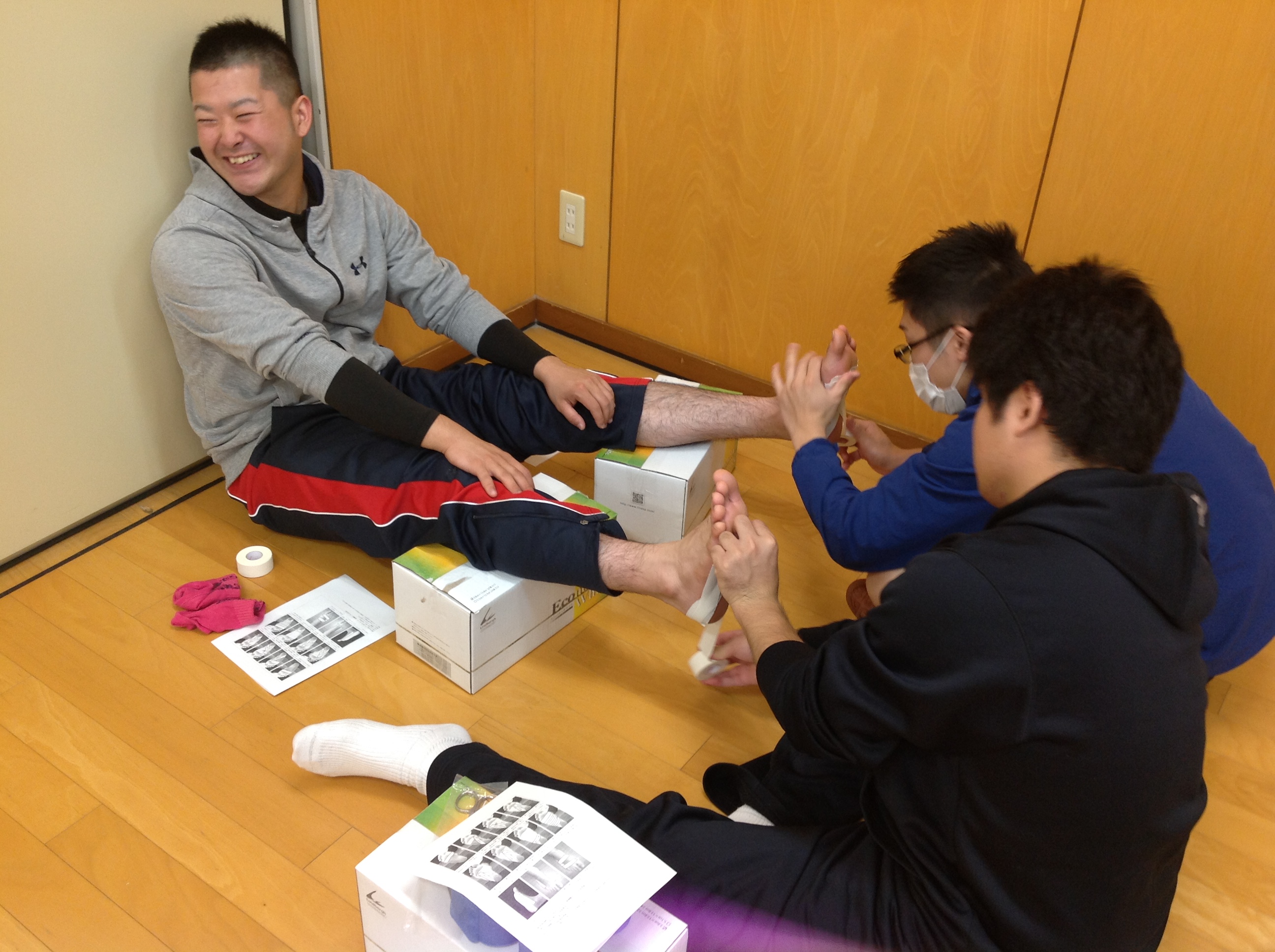 2016.10.26 テーピングの授業 1年生のテーピングの授業です。 テーピングを巻くためには、解剖学や運動学の知識が必要なんです。 そんな知識も勉強しながら、今日は、 「アーチのテープ」 を巻きました。 そのアーチのテープの効果に、「お!」 現場でも使えるテクニック! 皆、色々と評価をしながら、真剣にそして楽しく、巻きました。 前の記事 記事一覧 次の記事