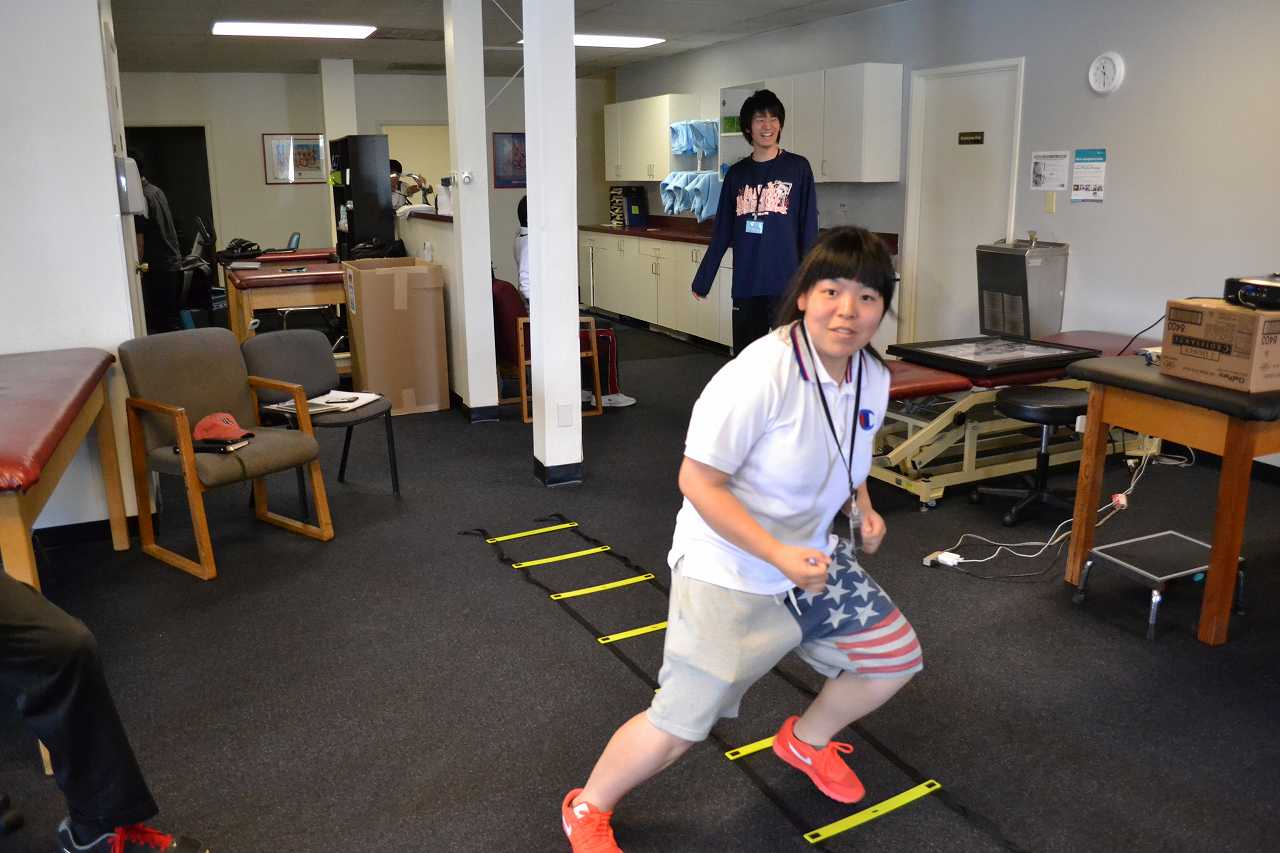 その後は実際に機器を使わしてアスリート選手が行うリハビリやエクササイズを体験