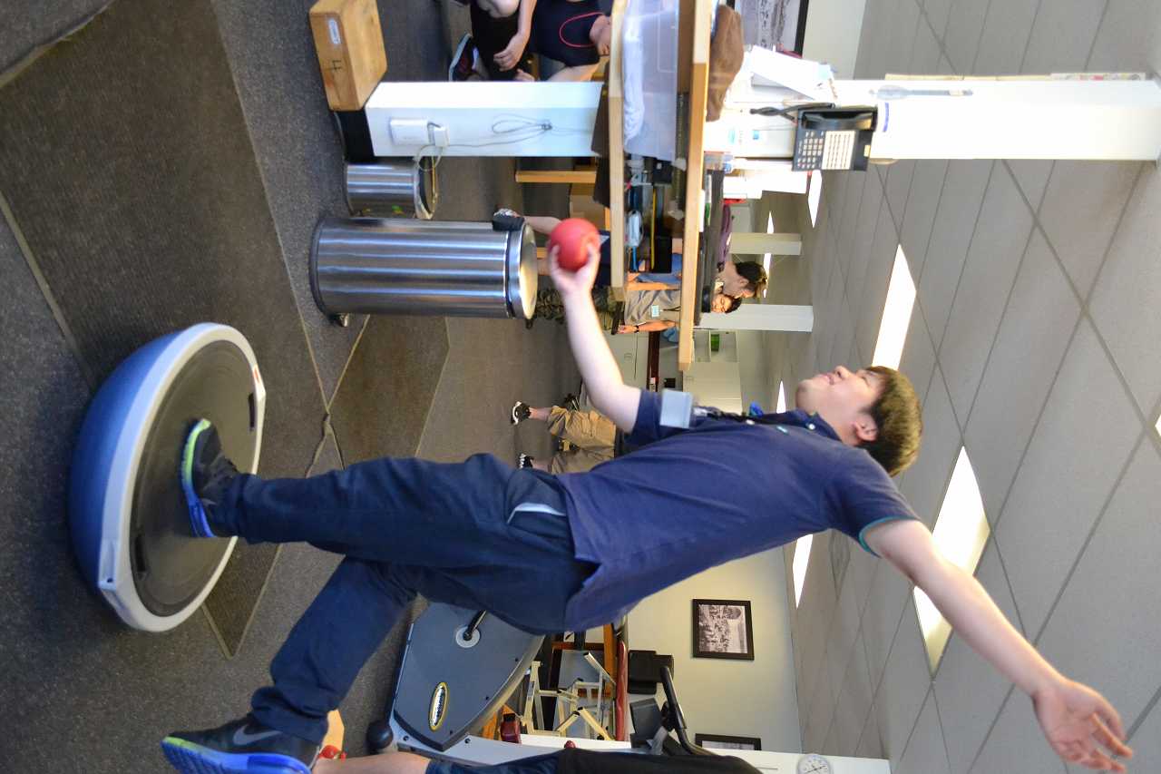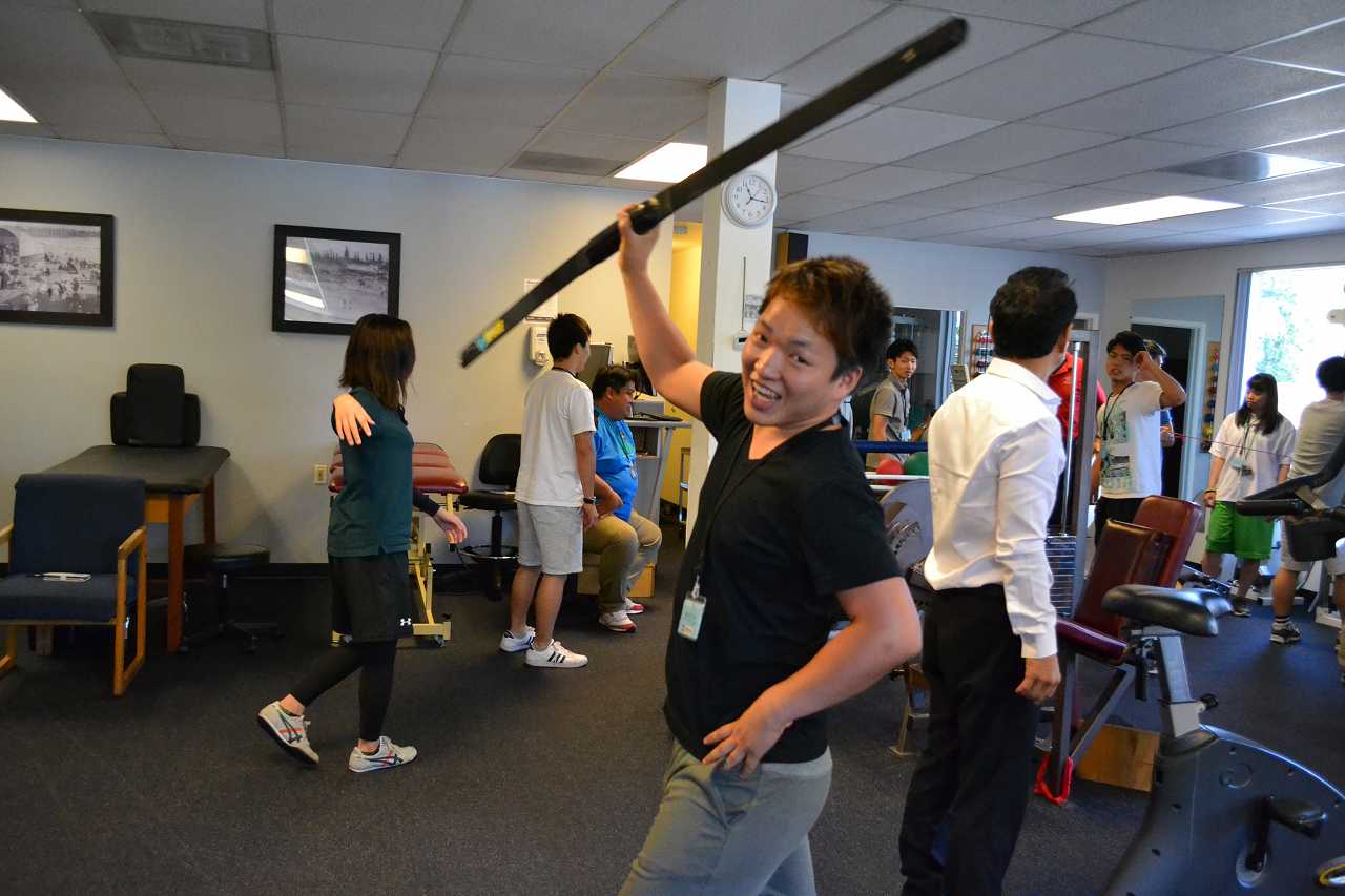 貴重なリハビリ風景を見せてもらった後、自分たちも同じように器具を使ったリハビリを体験しました。
