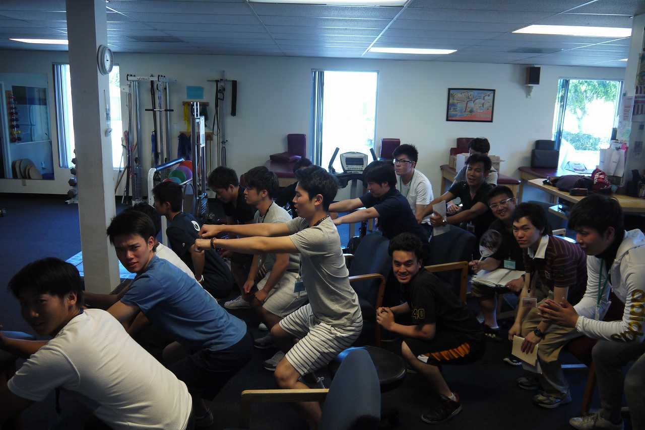 続いて午後は、まず、はるかさんによるアイソメトリックなどの筋運動をスクリーンや実際に動いたりして、学習しました。
