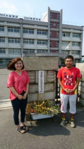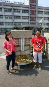 ソフトテニス部顧問の宮田先生はとても和やかに接してくださり、快く一緒に写っていただきました。