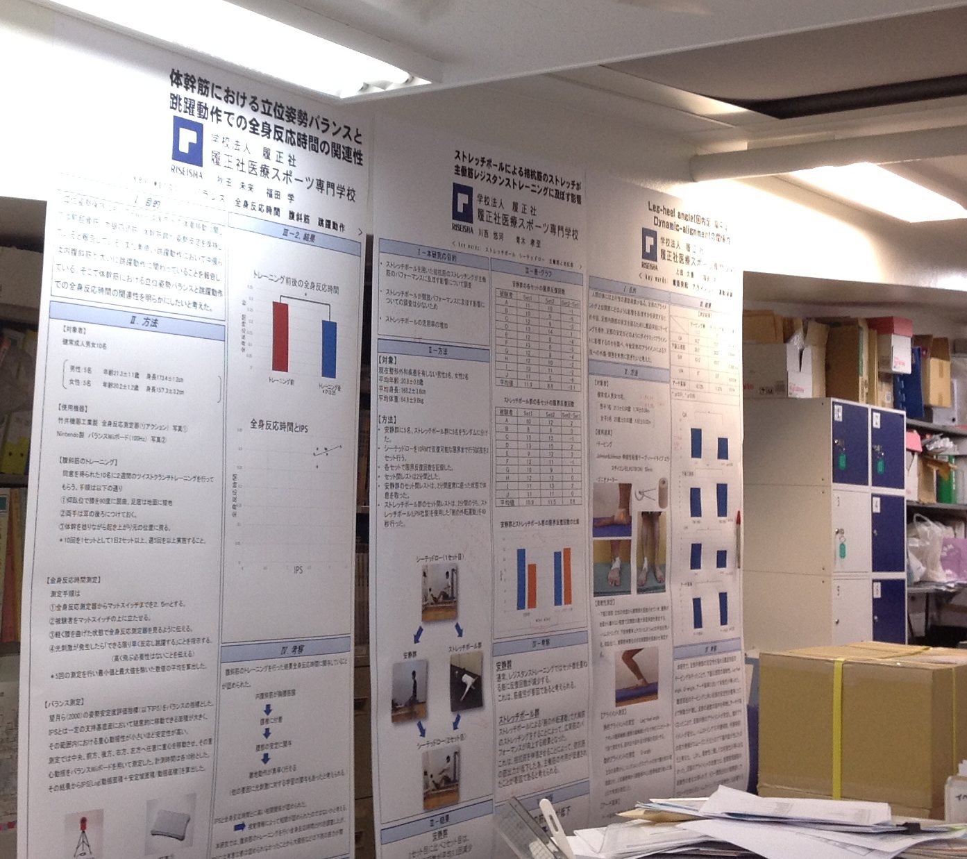 現在、職員室には、写真のように随時、発表用のポスターを掲示し、