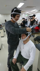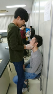 と、いうことで今日は、顎関節脱臼の整復法と、固定法を行いました。