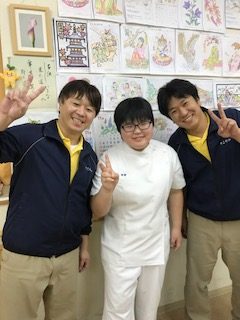 すこやかリハビリデイサービス:尼崎市 3年午前部 田畑 京(写真 真ん中)