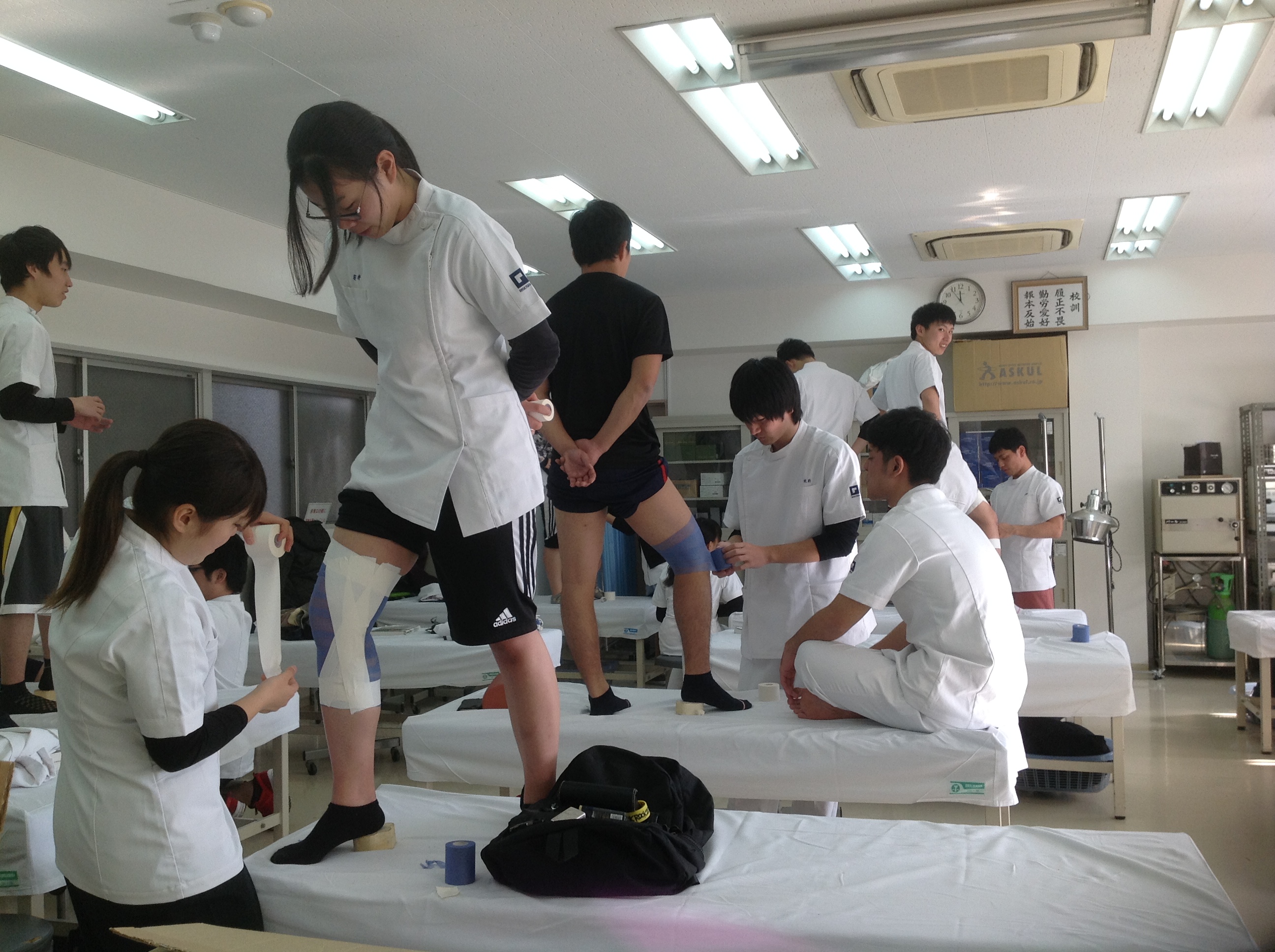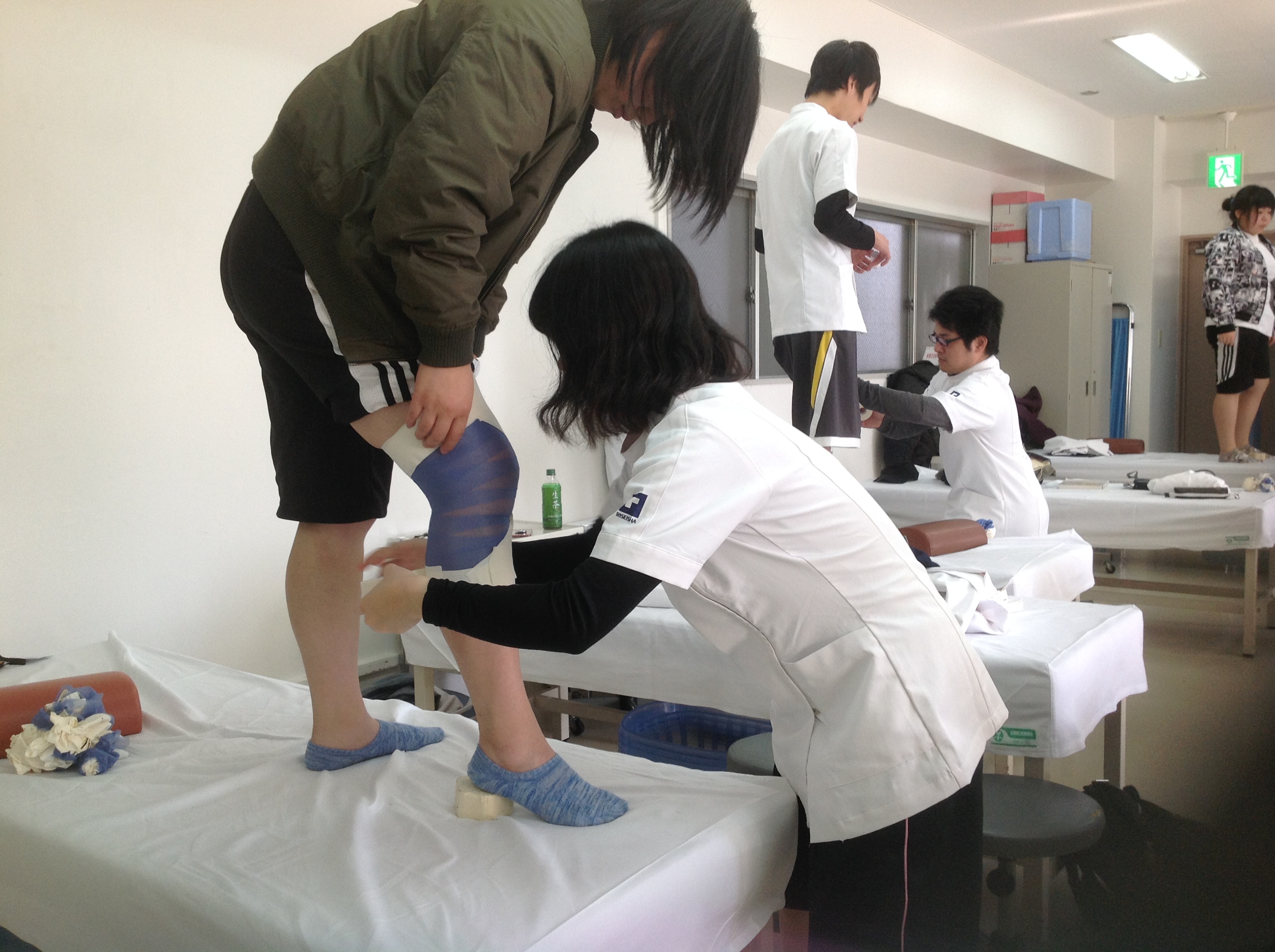 2017.12.16 テーピング祭 今週は、1年生も2年生も授業でテーピングを行いました。 2年生 膝関節側副靭帯用テープ(非伸縮テープバージョン) 1年生 足関節用テープ 皆、テープ好きです。 目指すところが、 トレーナーだったり、何かスポーツに携わりたい! ってことだったりするので、 色んな巻き方を試しています。 教員も、柔道整復師ならではというか、 少しアレンジした巻き方なんかも、ちょこちょこ入れていったり。 いっぱい、いっぱい練習して 「いつでも選手や患者さんを巻けるよ!」 そう言えるよう日々精進だね☆ 前の記事 記事一覧 次の記事