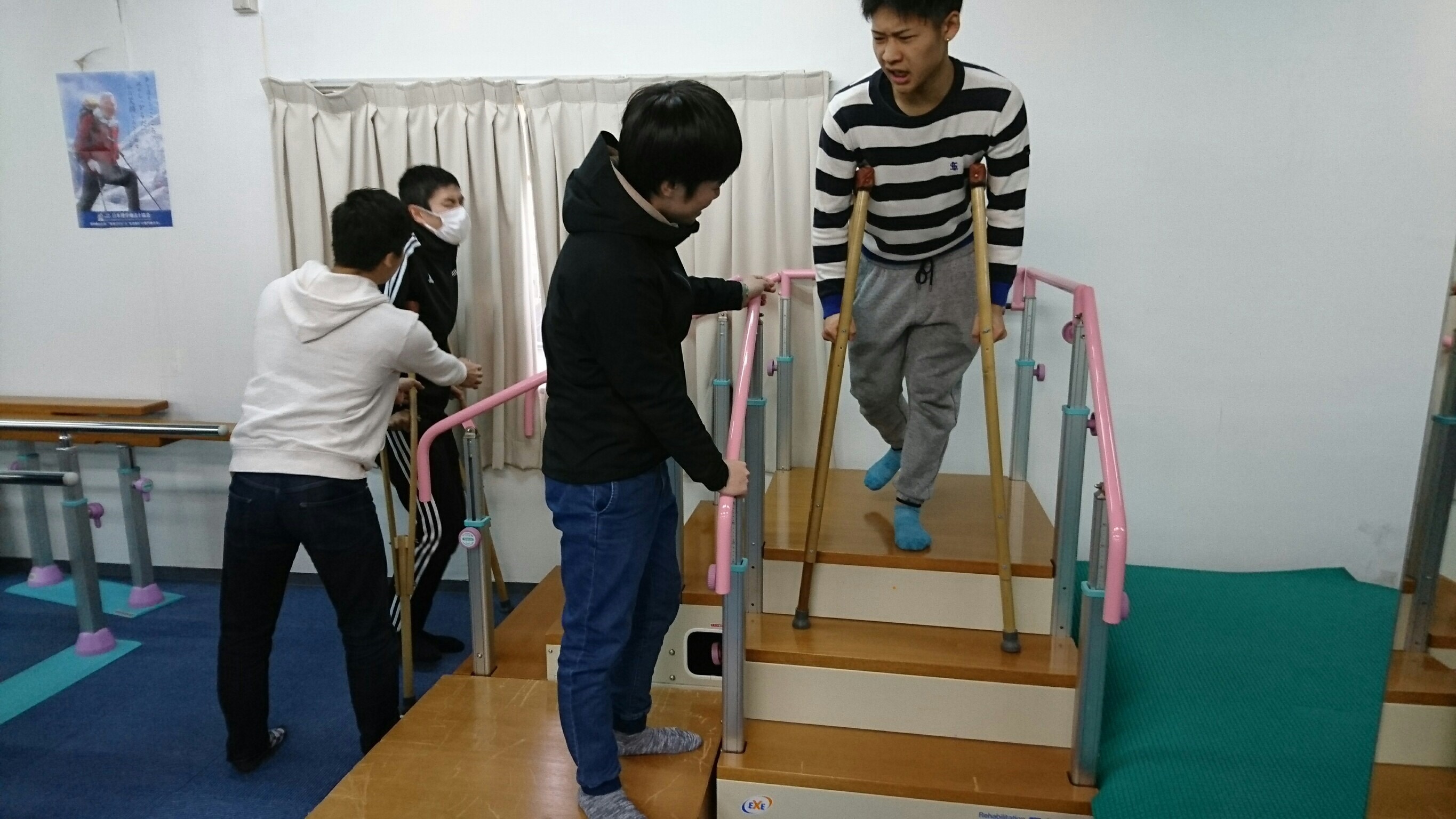 逆に降りるときは、松葉杖、悪い方の足、良い方の足の順で降ります。