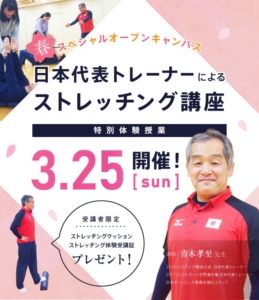 柔道整復学科教員である青木孝至先生(日本代表トレーナー)によるストレッチング講座も同時開催されます。