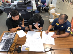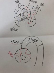 解剖学の脈管系について、柔整教員の青木先生にわかりやすく絵に書いて説明していただいてます。