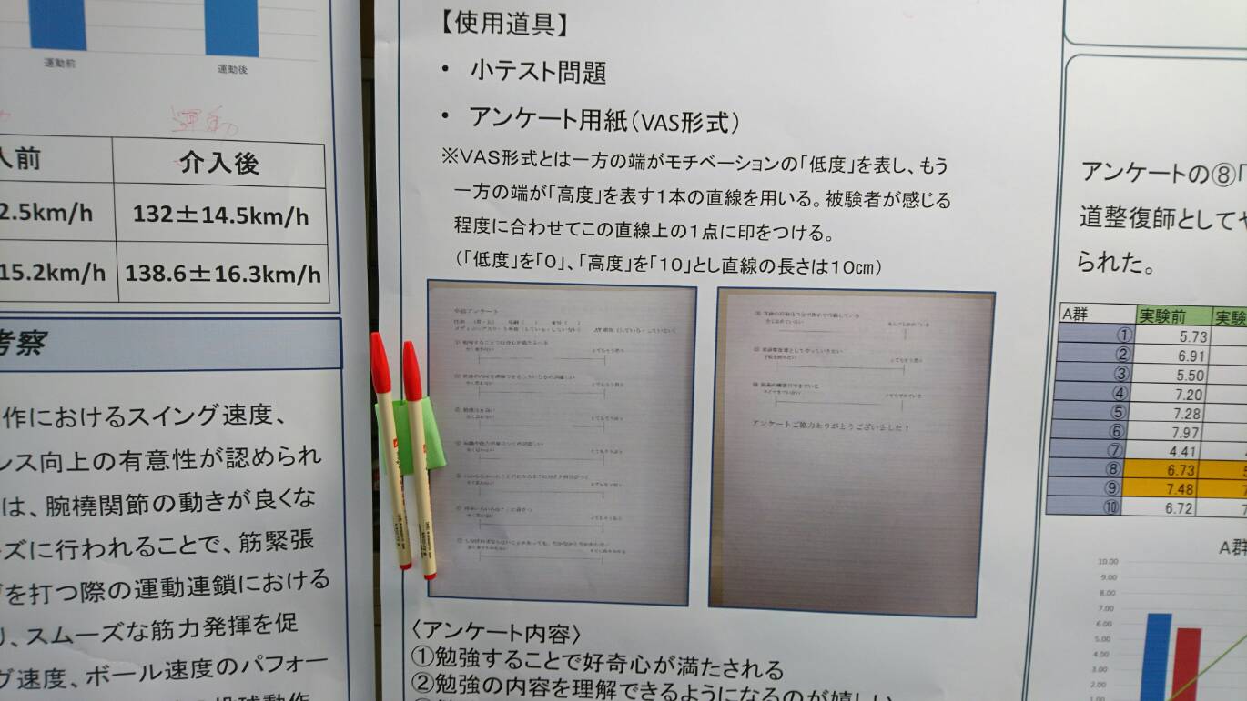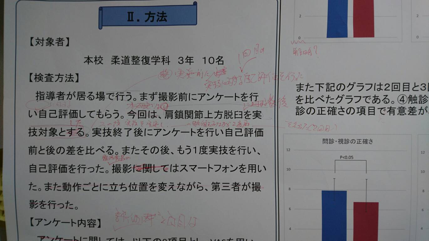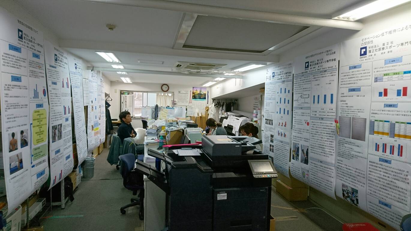 これは11月17日・18日に名古屋で開催される、日本柔道整復接骨医学会で発表する3年生8人の原稿プリントアウトし、垂らしたもの。