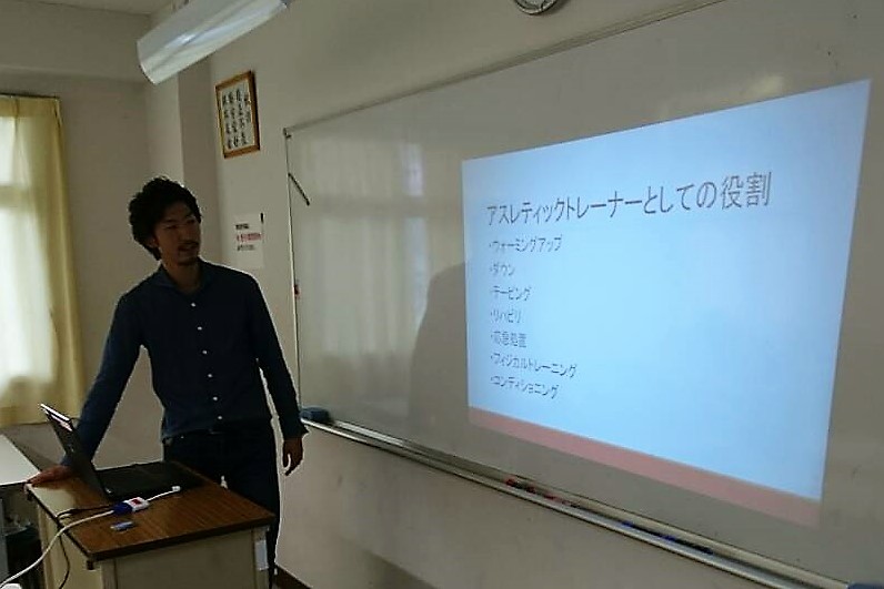 写真は先日行われた、メディカルアスリート専攻※スポーツメディスン最終講座で講義をする風景。