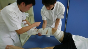 待合室から助手を使った診察室への誘導、問診、視診、鑑別検査、患者状態把握、リスクマネジメント、疼痛誘発運動検査、治療処置、固定処置、サーキュレーションと知覚状態確認、指導管理、などなど。