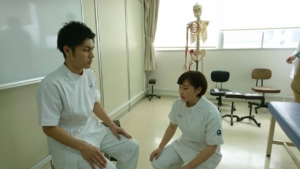 その3名に対して、試験を受ける学生が、接骨院の仮想空間で、待合室にいる患者さんとの医療面接からスタートするのです。