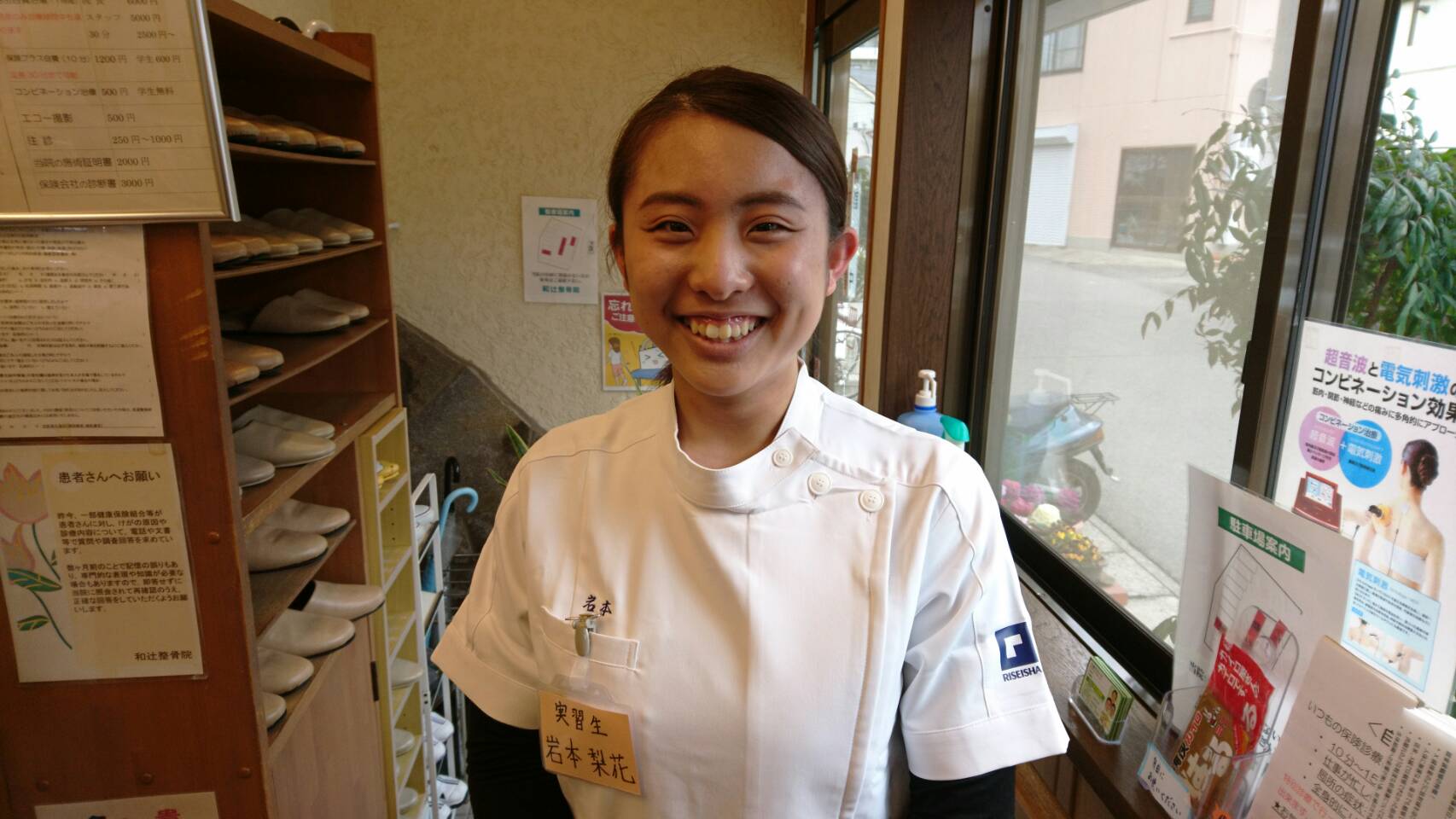 写真にあるのは神戸市長田区の和辻整骨院で実習を受けた、新2年生の岩本 梨花さん。(日ノ本学園高等学校出身)
