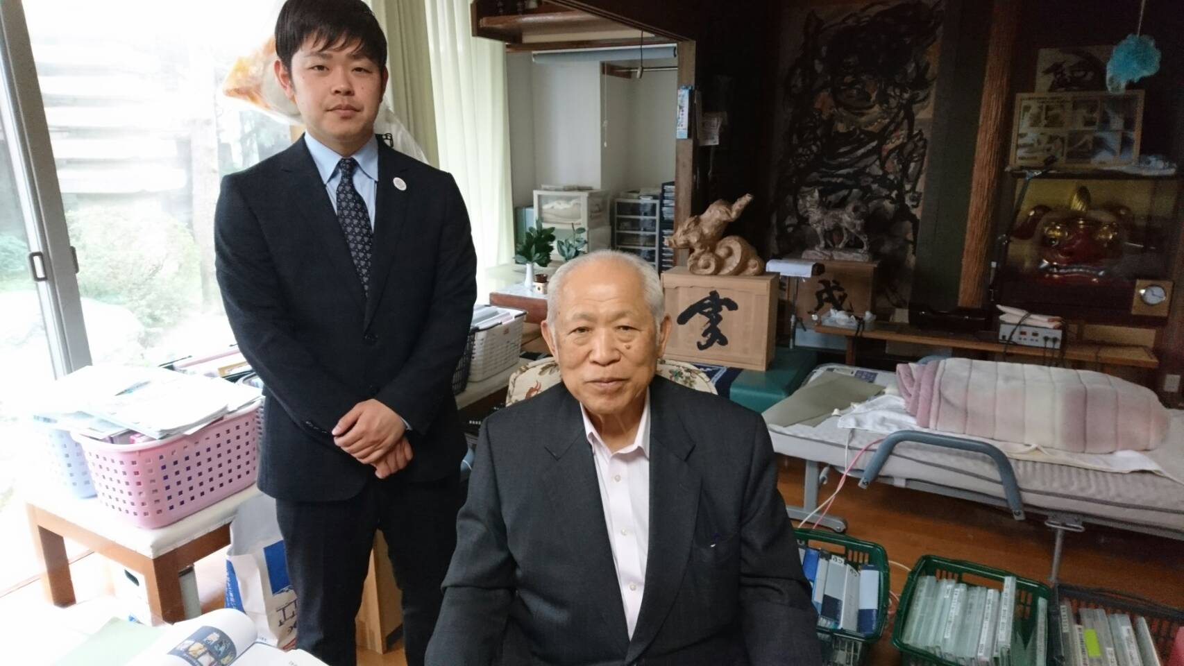写真にあるのは履正社柔整臨床実技の特別講師、富山の※高崎光雄先生と8期生の山根君。