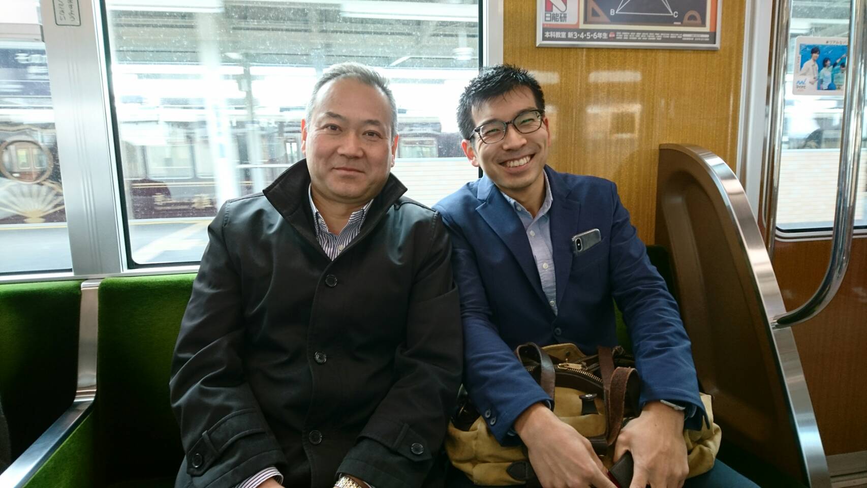 写真にもう1枚写っているのはなんと、磯君の整骨院から帰りの阪急電車、偶然8期卒業生の本君と会い、ショットしました。