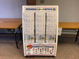 その際に、1階フロアに履正社柔整のパンフレットを設置させていただいておりますので、参考までに是非お持ち帰りください。