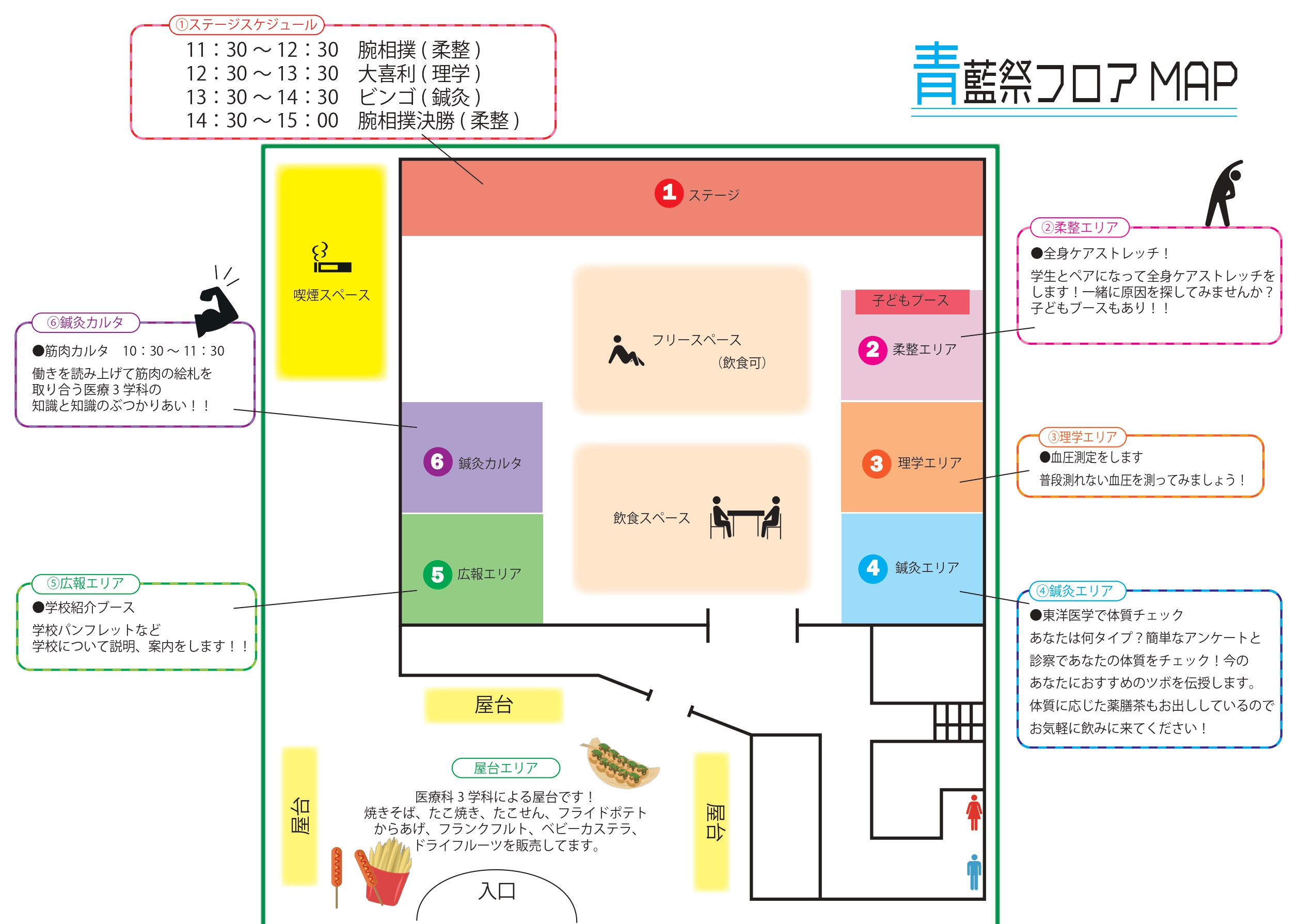2019.05.20 いよいよ今週末に『青藍祭』開催されます! いよいよ、今週の日曜日に文化祭『青藍祭』が開催されます! 文化祭の運営・準備は医療3学科が協力し合い、学生主体で行われています。 また、当日に向けて屋台ブースの試作やストレッチの練習、看板製作など学生が心を込めて準備を進めています。 柔道整復学科は 屋台:たこ焼き・ベビーカステラ・かき氷 体験ブース:ストレッチ ステージ:腕相撲大会 を担当します。 皆さん、ぜひお越しください! 前の記事 記事一覧 次の記事
