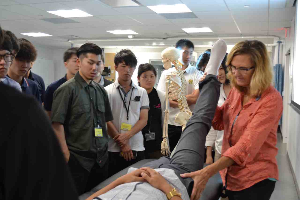 これは、スージー先生によるハムストリングのストレッチの講義です。実際にストレッチをする際に注意することを教えて頂きました。立位や長座体前屈のようなやり方は、高齢者や腰が悪い方には腰に負担が掛かるので、伸ばしたい方の脚を一歩前に出して、背中が丸まらないように身体を前に倒してストレッチする方法がbetter!!