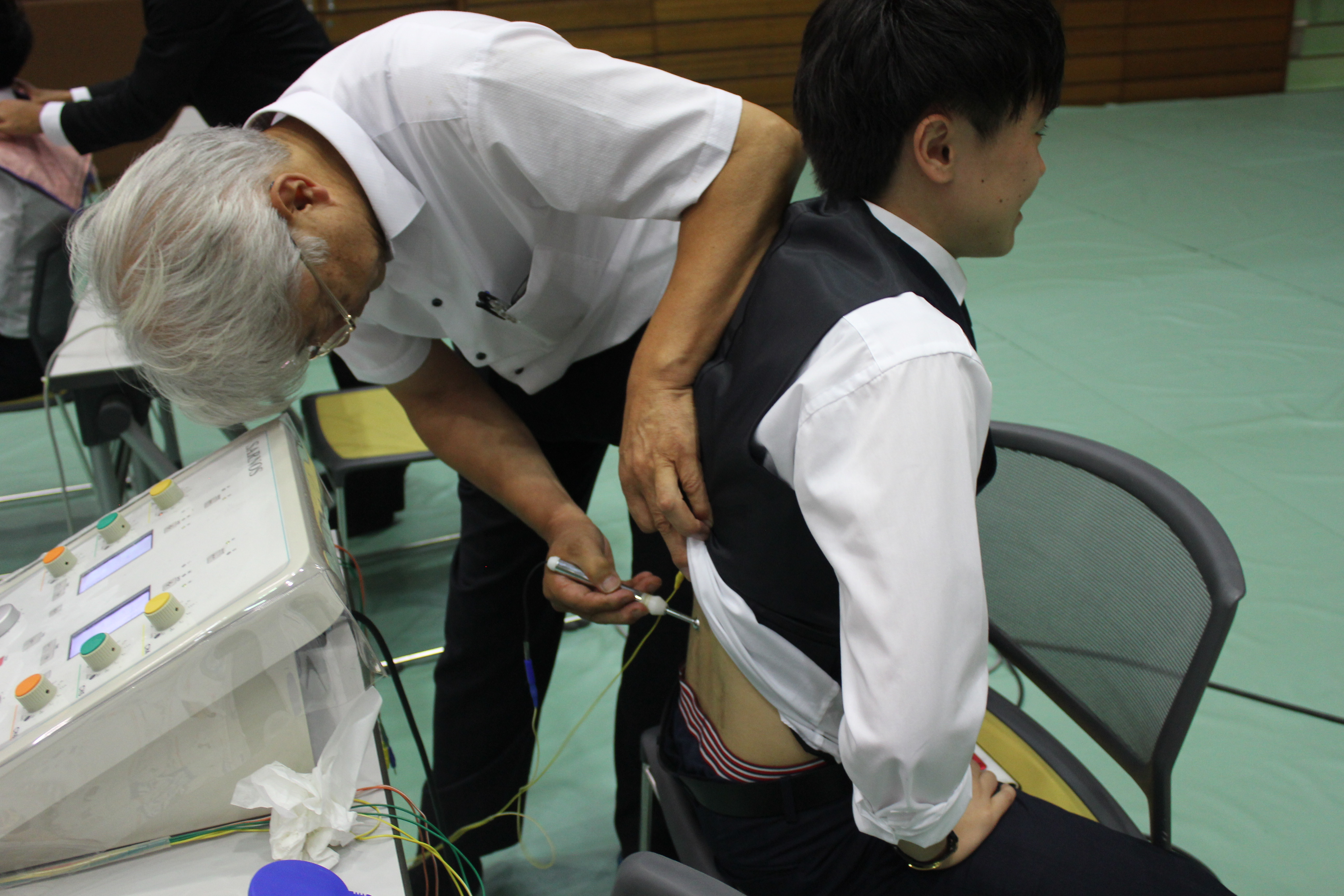 物理療法の機会展示・体験、そして来年4月から医用画像の授業と実技がスタートする、超音波エコー観察装置のデモもある。