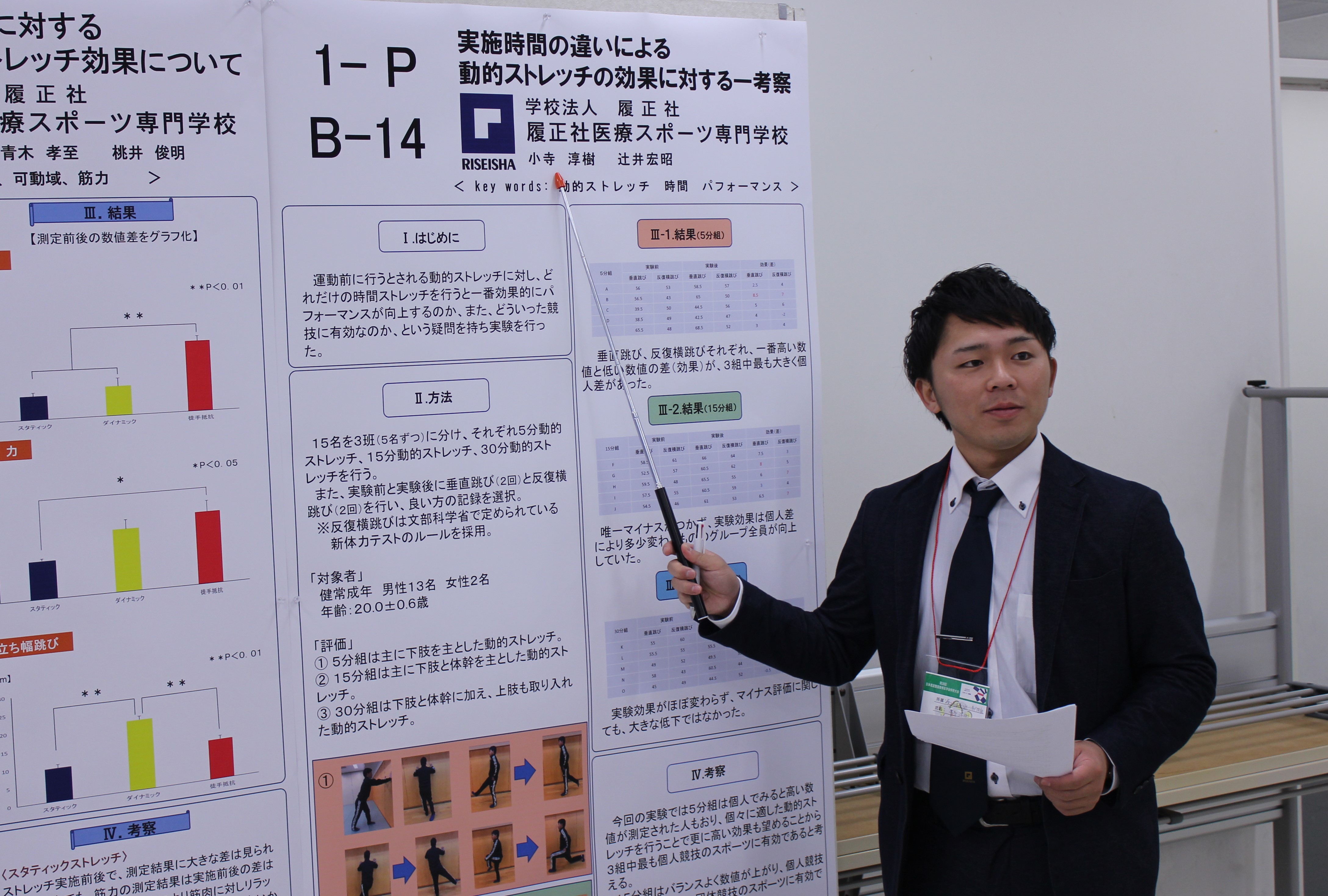 研究を進めるなかで、実験として30分間の動的ストレッチメニューを思案する事に苦労を感じました。