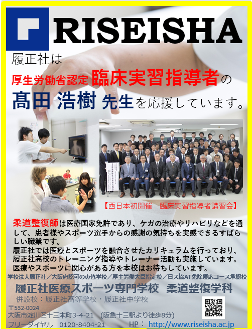 写真にあるのは左から、2期生の粟津君(過去にblogあり)、後部座席には西宮市にある厚労省認定実習施設の高田柔道接骨院、臨床実習指導者資格を持つ高田浩樹院長。