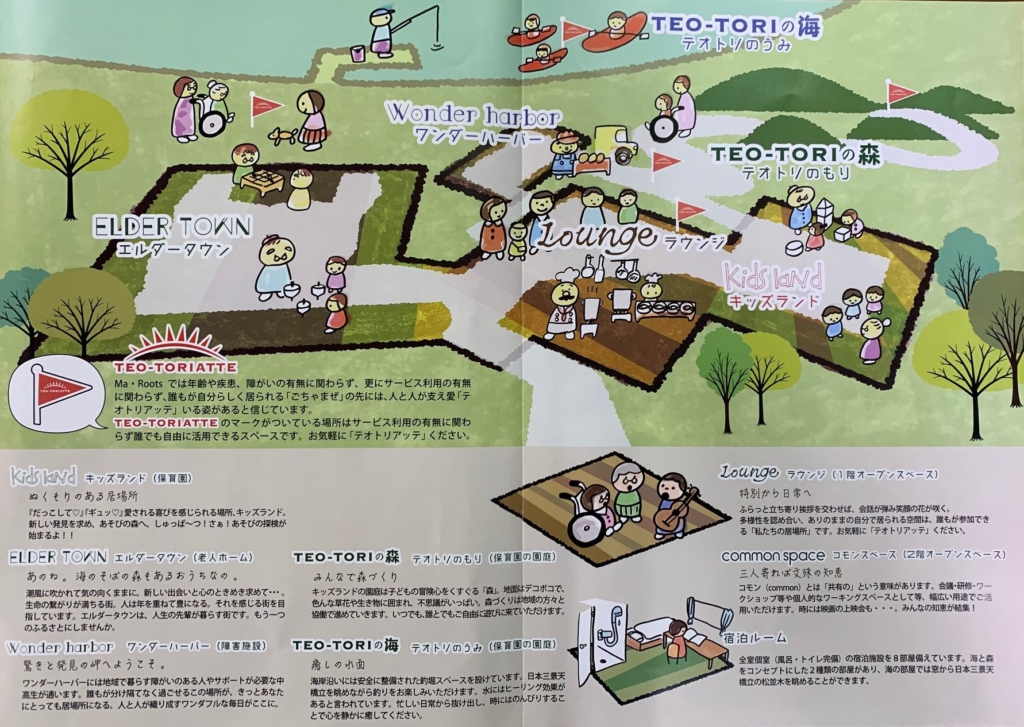 イラストにあるのは、京都府宮津市にある、社会福祉法人みねやま福祉会 Ma・R00Ts(マ・ルート)の全体像のイラスト。