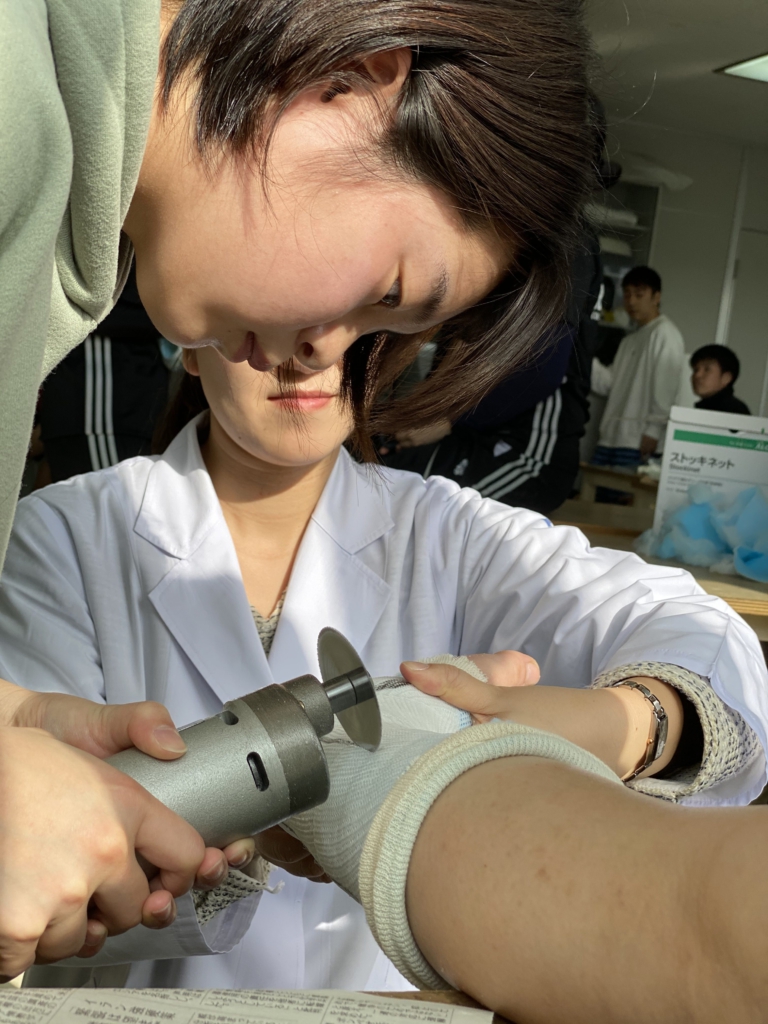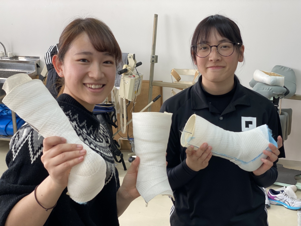 「ギプスを巻く時も、テーピングや包帯とは違うので、どこから巻き始めるべきなのか、どれぐらいの強さで巻けばいいのかが難しかったです。