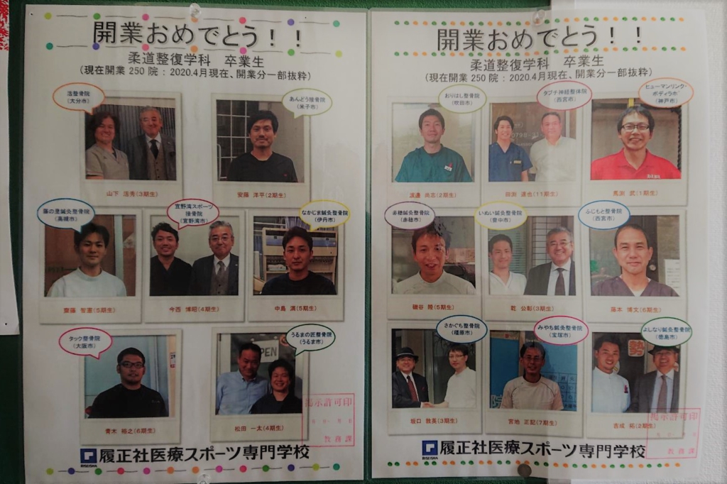 履正社 柔道整復学科の開業者は卒業生約750人中250人。