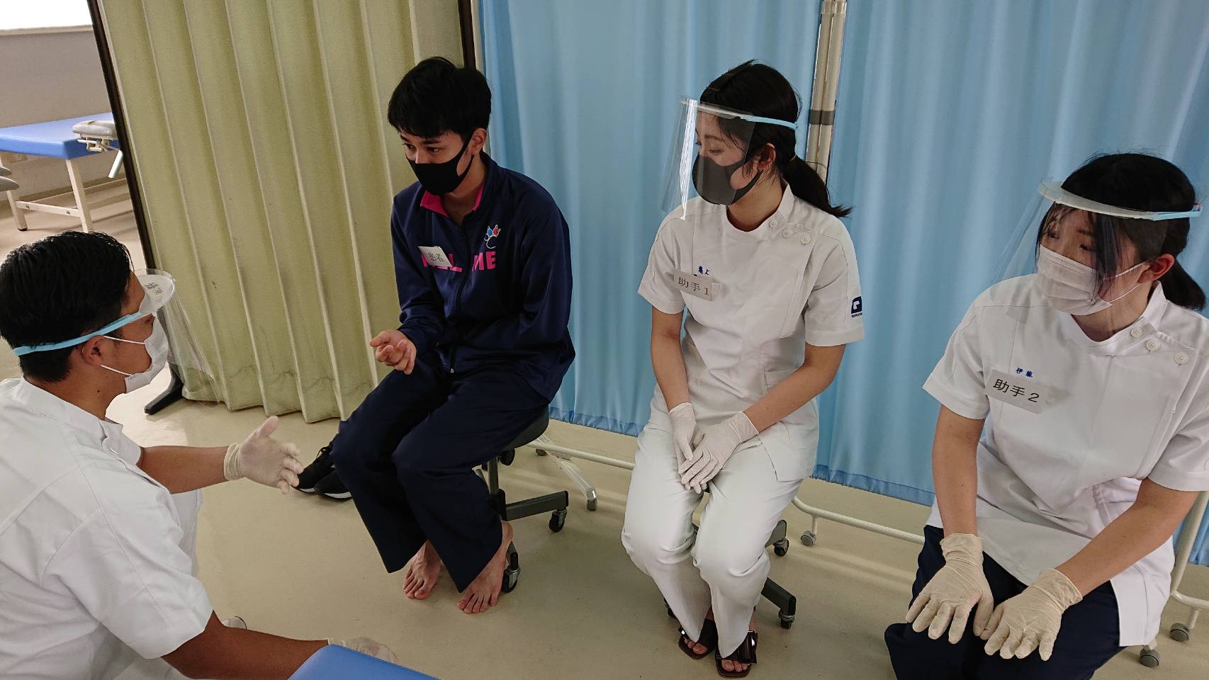 2020.08.17 今年の実技試験は感染症対策で実施・受験した3年生、患者役・診療助手役を演じる2年生の様子。 こんにちは、学科長田中です。 写真にあるのは、3年生の実技試験の風景。 30年間の柔道整復教育の中で私も始めての経験です。 実技試験を受験する3年生も2年生も、マスク、フェイスシールド、ゴム手袋着用の上、受験する。 一見異様な風景ですが、感染症対策をしっかり講じた上での教育活動との両立。 そうでなくても緊張の中、冷や汗やあぶら汗をかきながら、3年生においては大変お疲れだったと思います。 ほとんど夏休みのない中、今年も残り半年、最高のパフォーマンスでいきましょう。 前の記事 記事一覧 次の記事