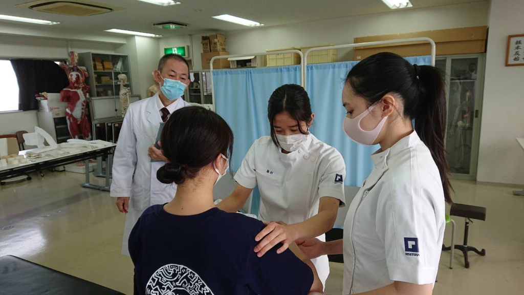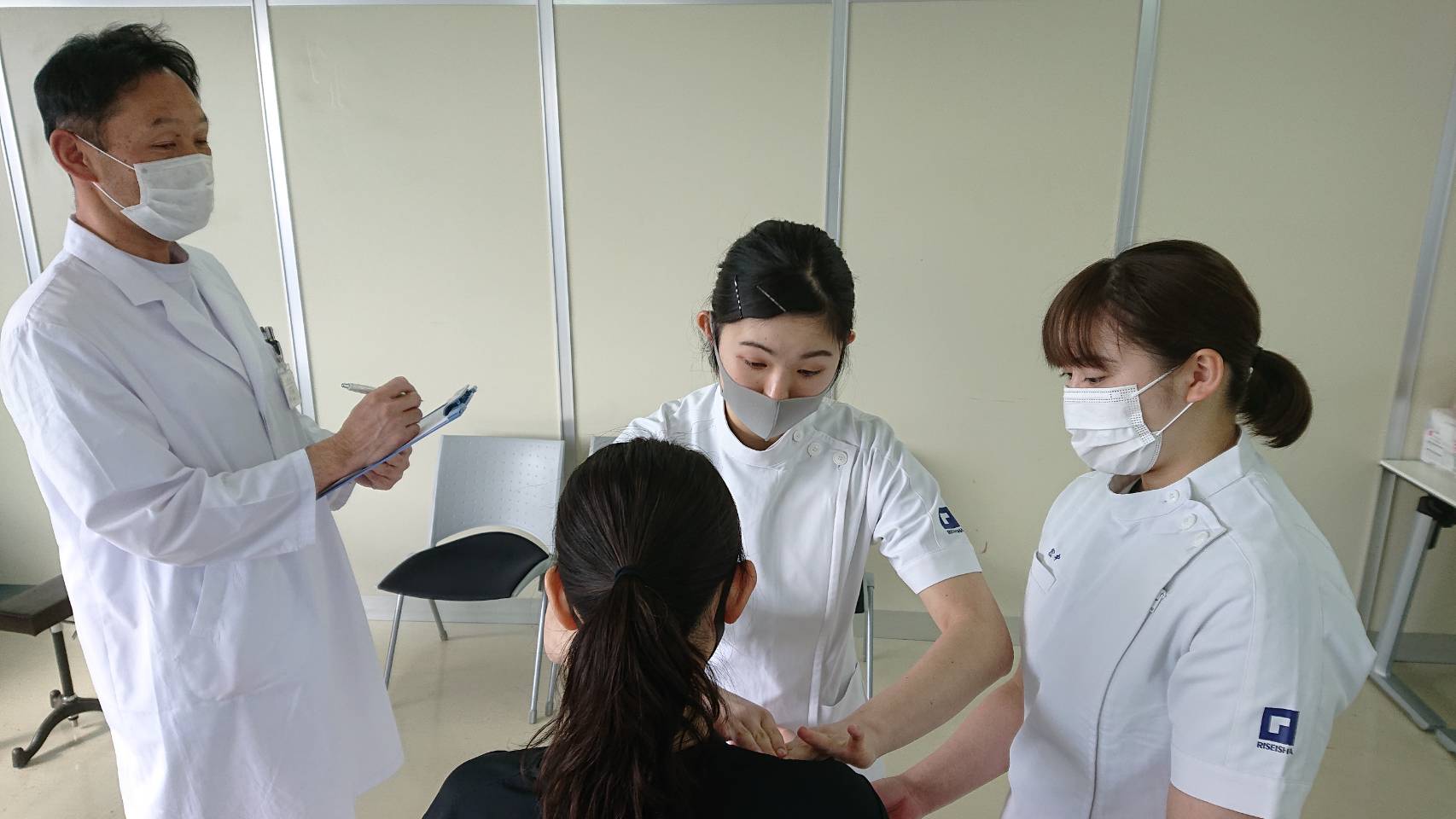 先日から各学年の実技試験の様子をアップしていますが、今回は2年の整復医療実技です。