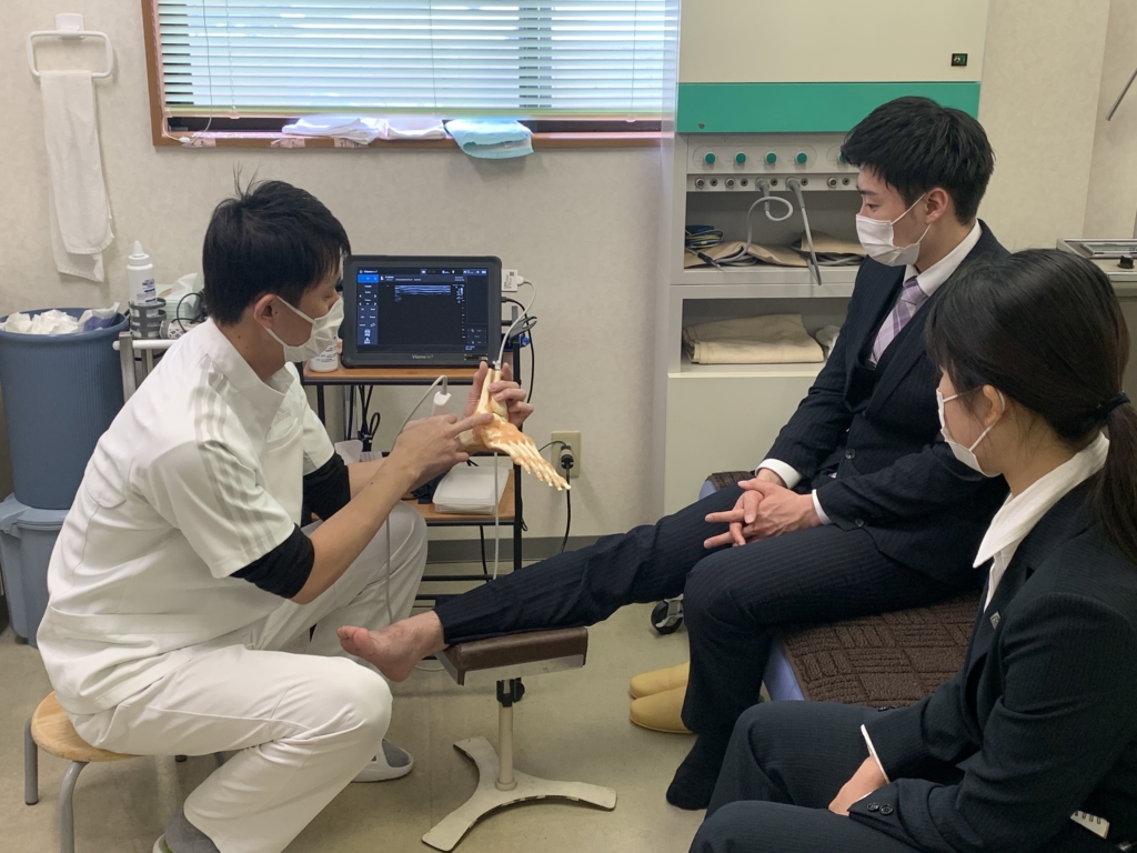 写真にあるのは、履正社柔整教育連携接骨院の高田接骨院でのフィールドスタディーの様子。