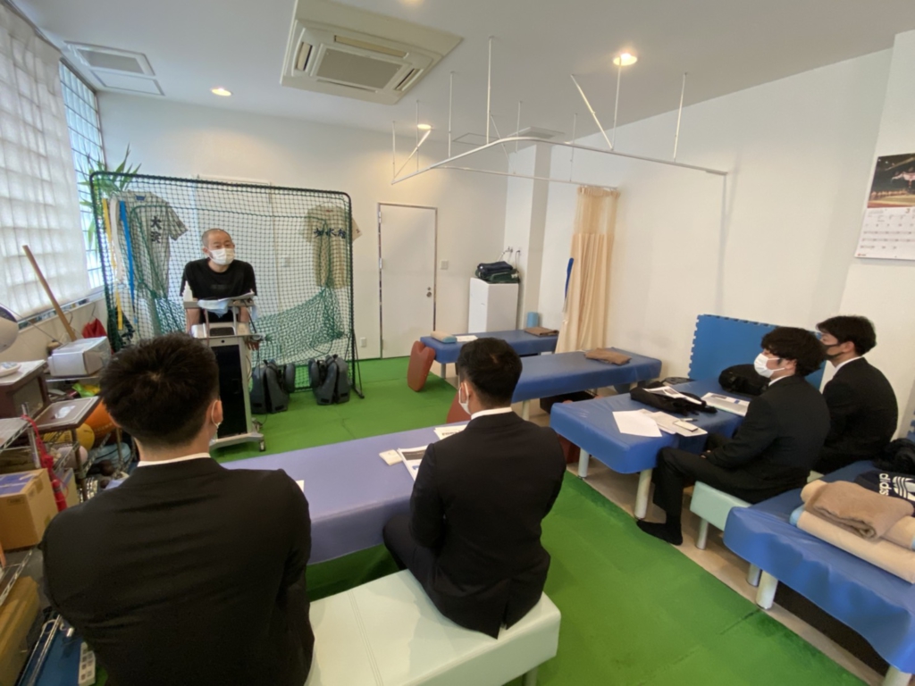 前回の実習でもお世話になった橋本スポーツ鍼灸整骨院において、本日、現地プレゼンに実習生4名が臨みました。