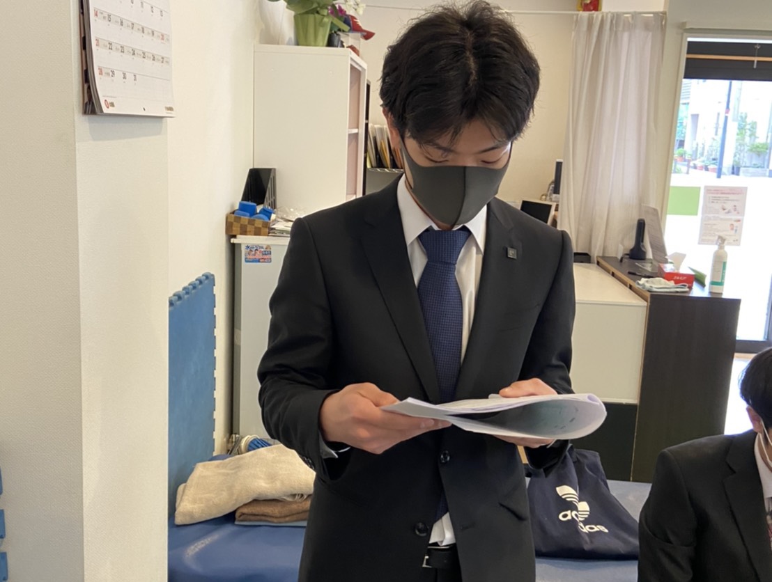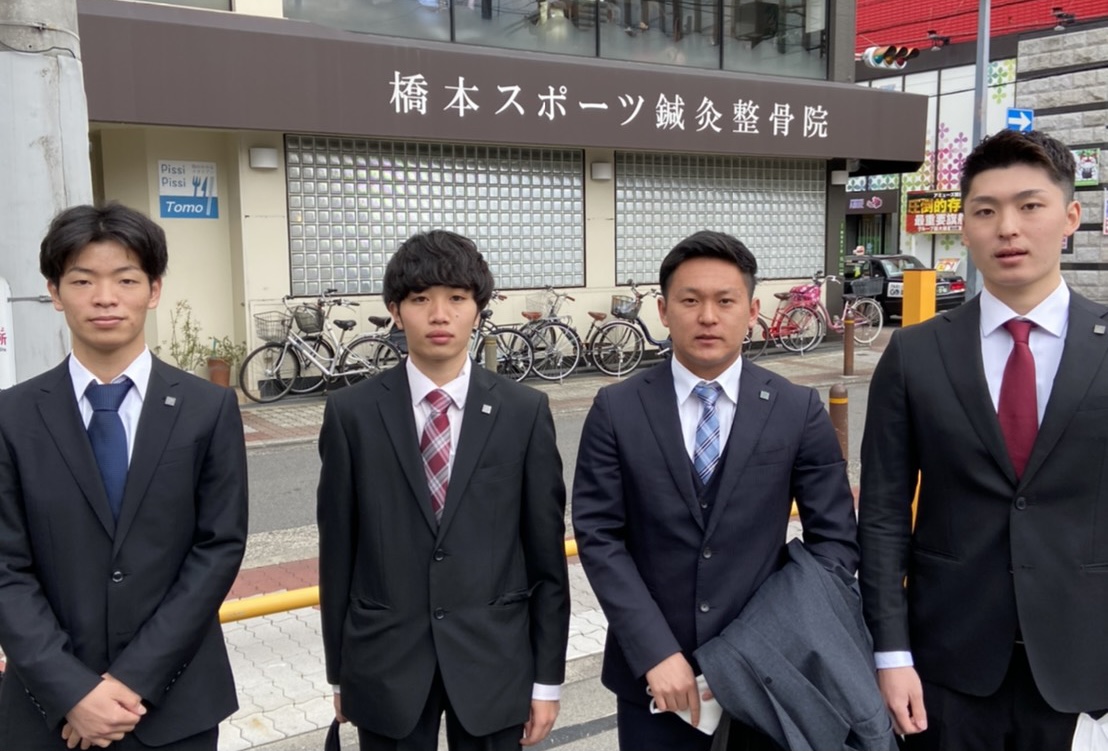 前回の実習でもお世話になった橋本スポーツ鍼灸整骨院において、本日、現地プレゼンに実習生4名が臨みました。