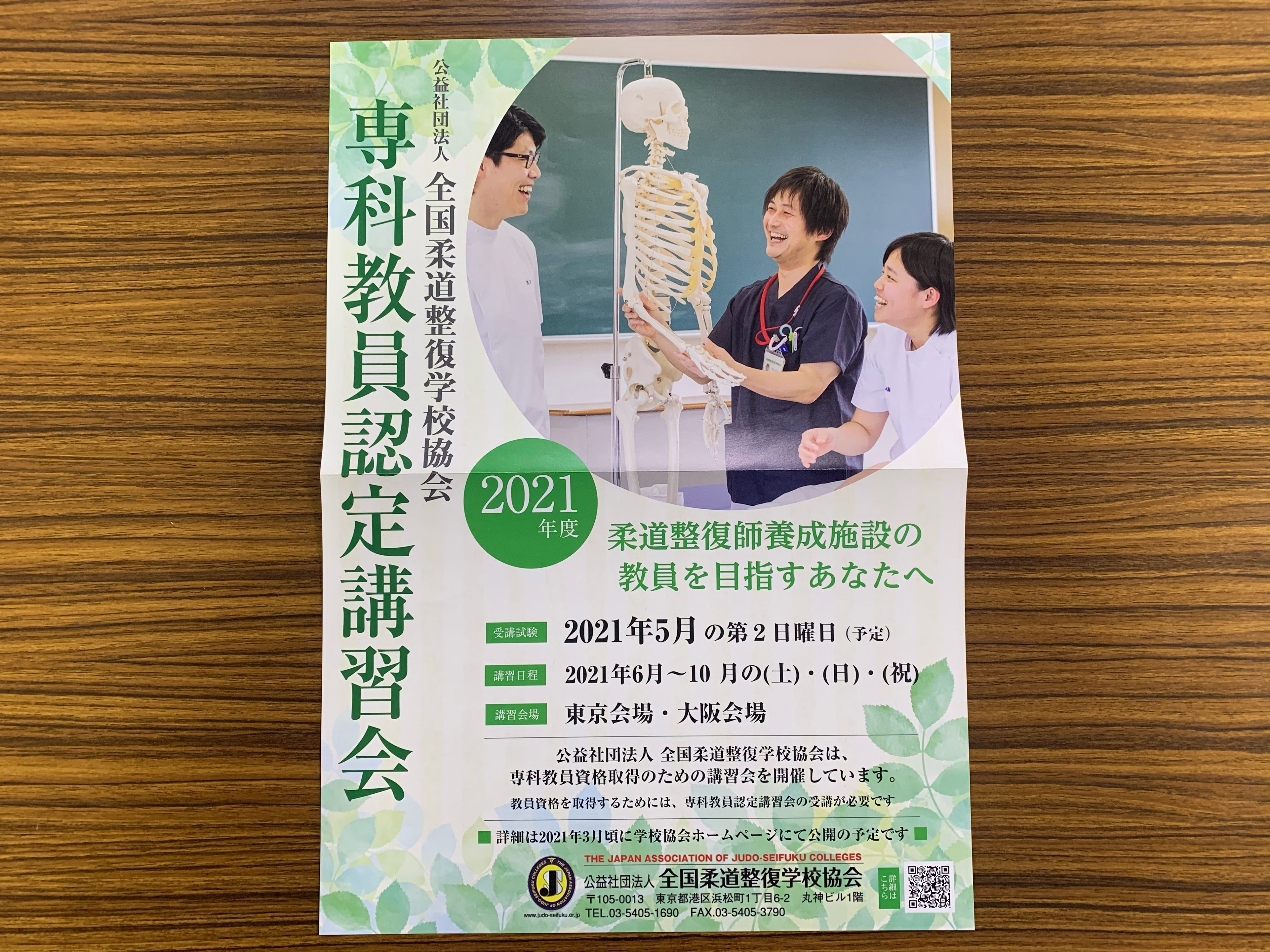 講習会は現在、公益社団法人全国柔道整復学校協会が厚生労働大臣により指定を受け開催しています。