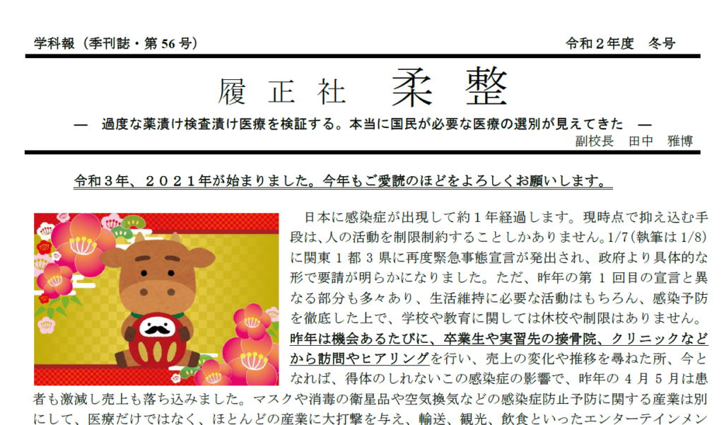 先日発行した、履正社柔整学科報56号(令和2年度冬号)に執筆した内容が、意外にも読者から反響が大きく、以下、概略を披露させていただきます。