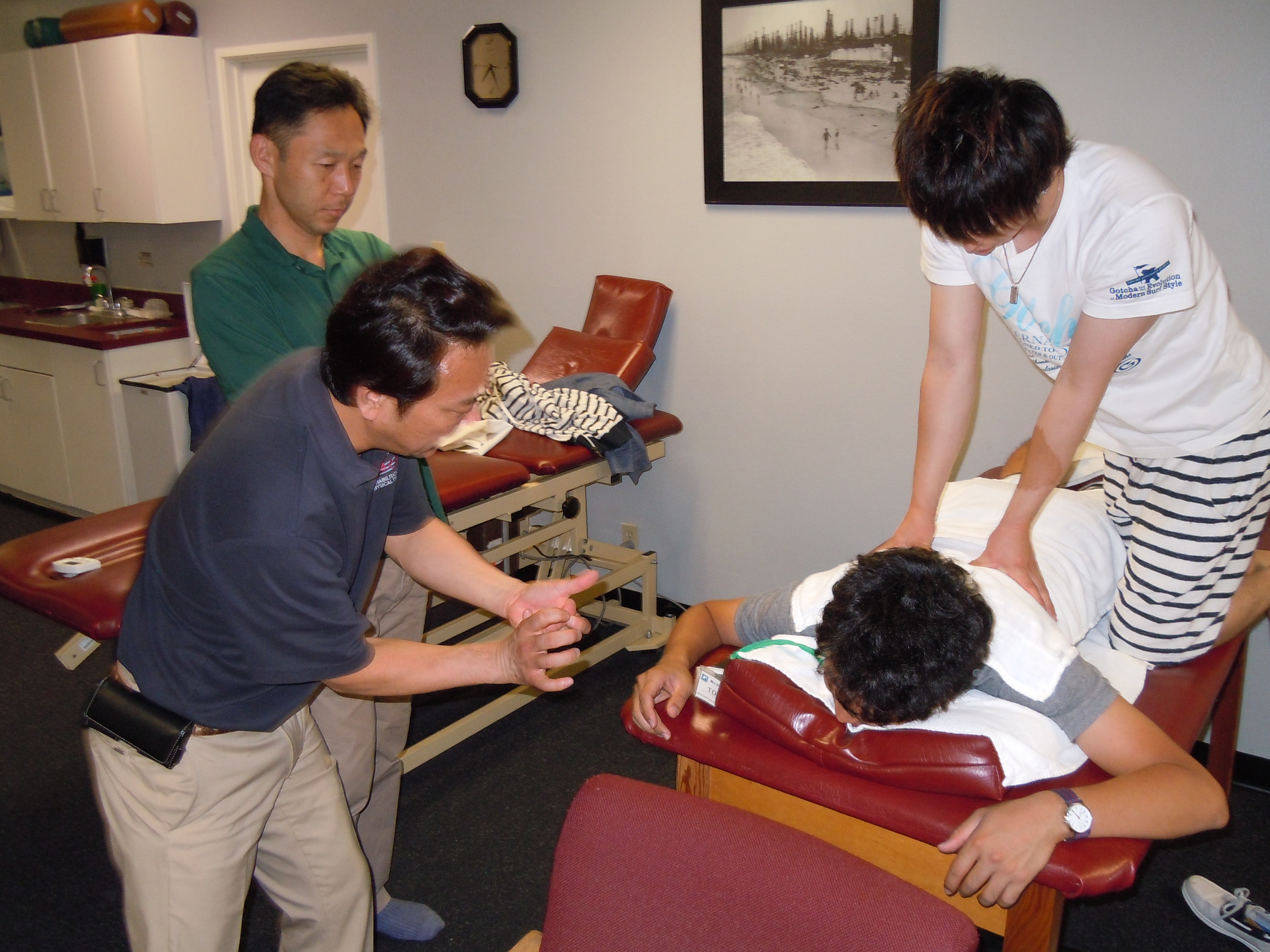 夕方から、クリニックで、手技の勉強&鍼の体験&ジム先生の質問タイム。