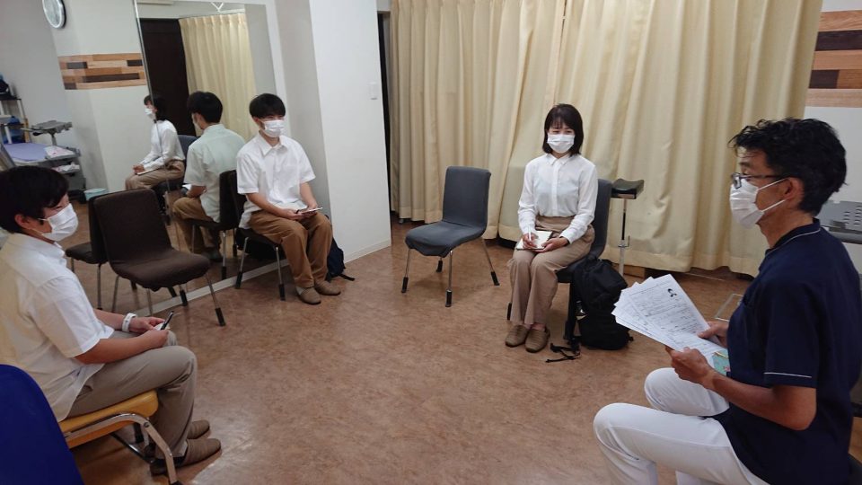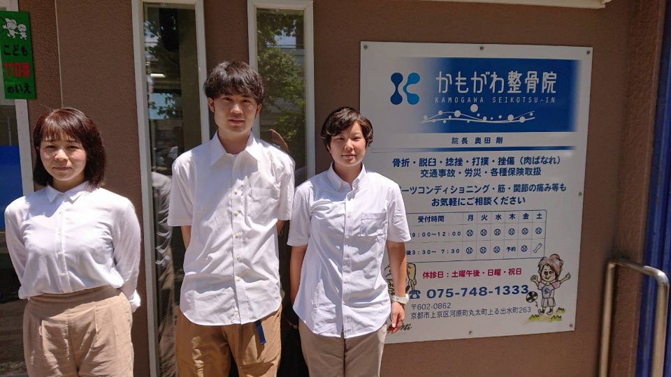 写真にあるのは、かもがわ整骨院での実習前指導風景ほかもろもろ。
