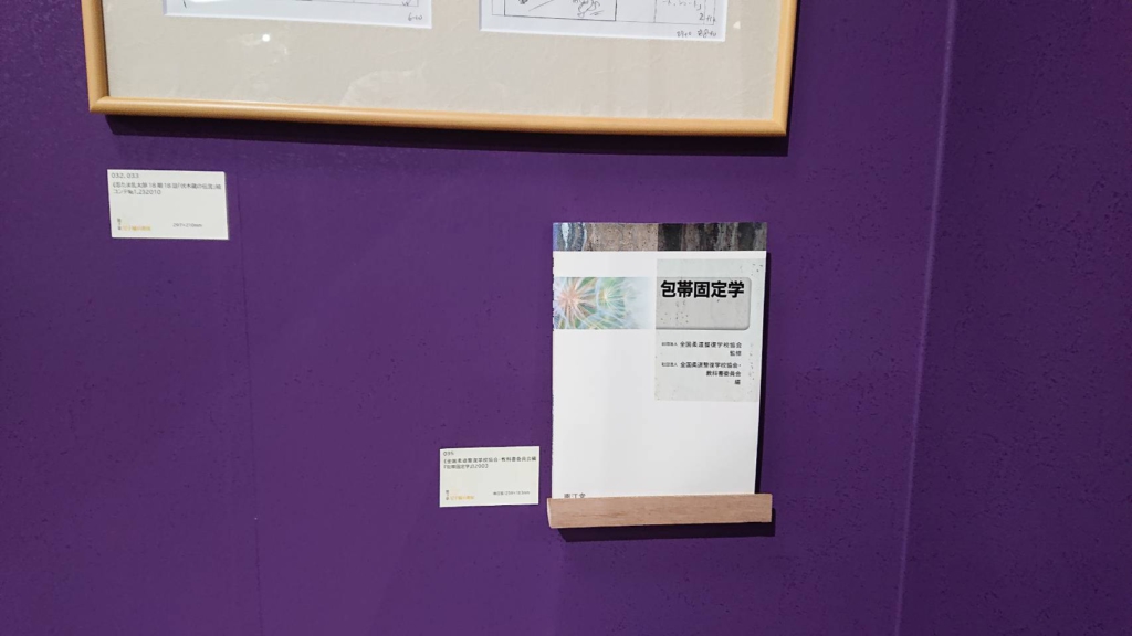 履正社柔整の学生が履修している“包帯固定学”のテキストが展示物の中にあったのです。