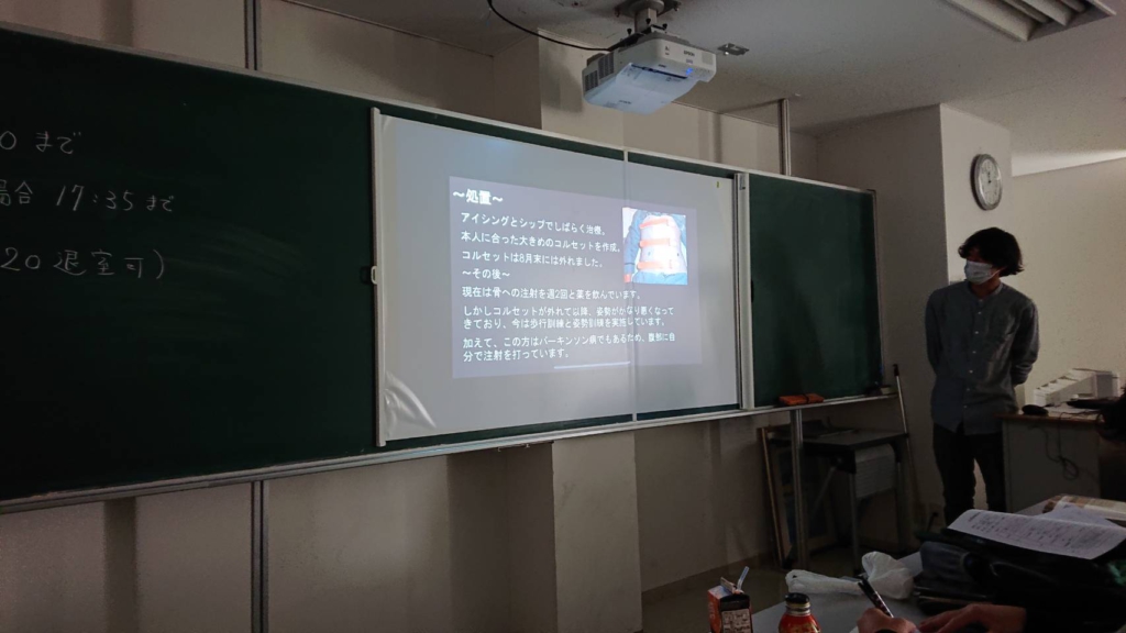 少しわかりづらいが、彼の発表は実習施設の周辺環境から始まり、