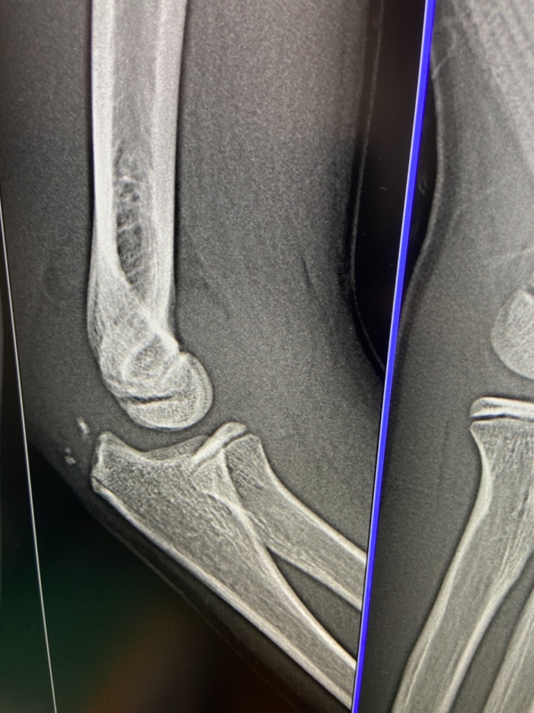 右肘部周辺の腫脹(はれ)が著明になり、同時に運動時痛安静時痛も出現、